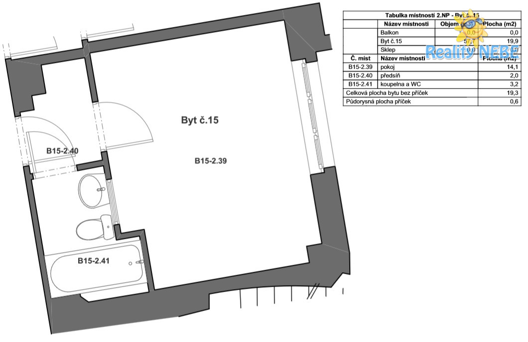 | Dispozice/podlahová plocha: | 1+kk/20 m² |