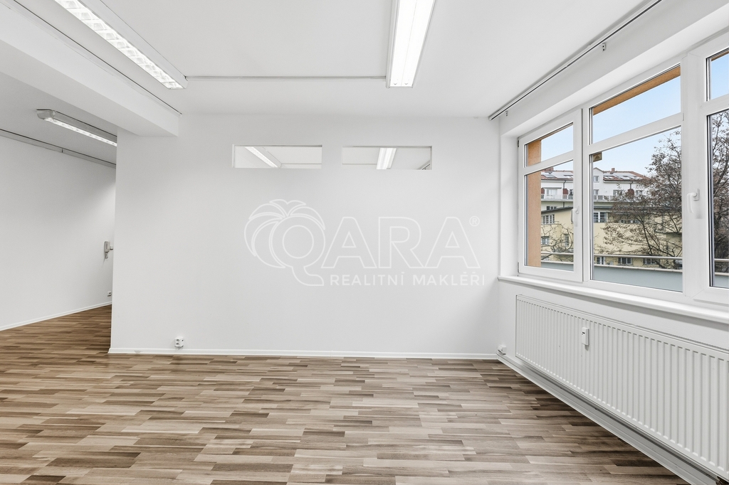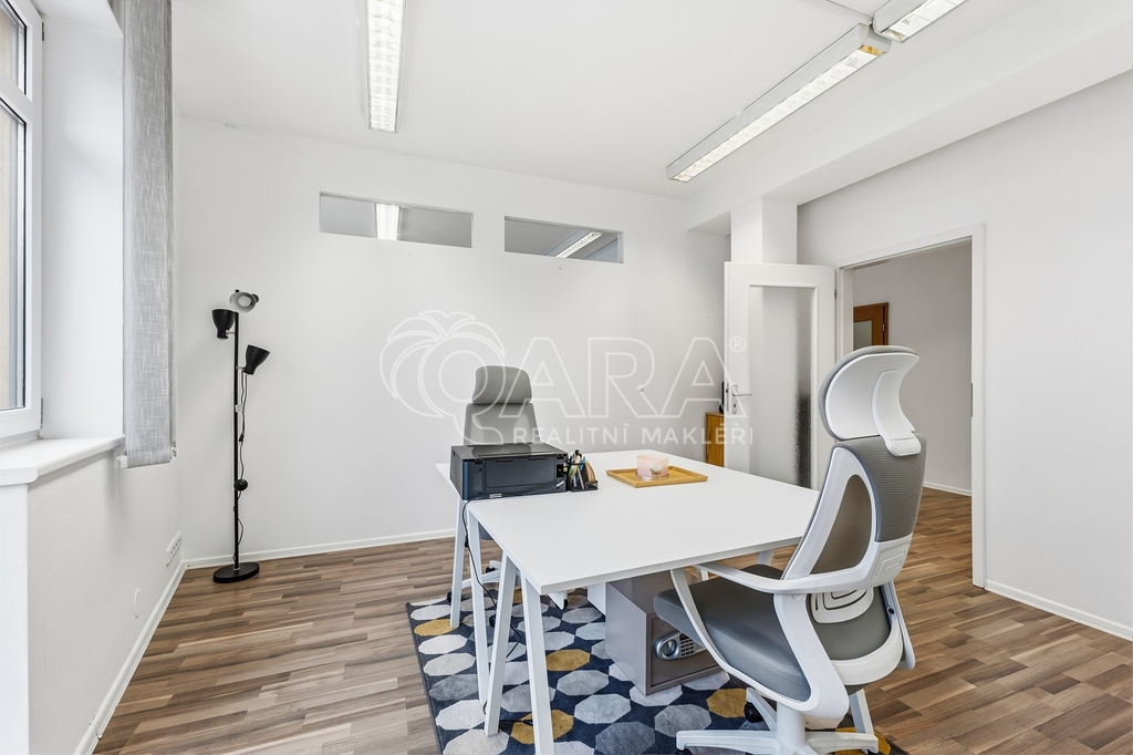 Kancelář je prakticky rozdělena na dva samostatné prostory, které poskytují dostatek soukromí i flexibility pro různé pracovní využití. Kancelář je vybavena klimatizací, jinak je pronajímána bez vybavení. Součástí pronájmu je také parkovací stání v garáži.