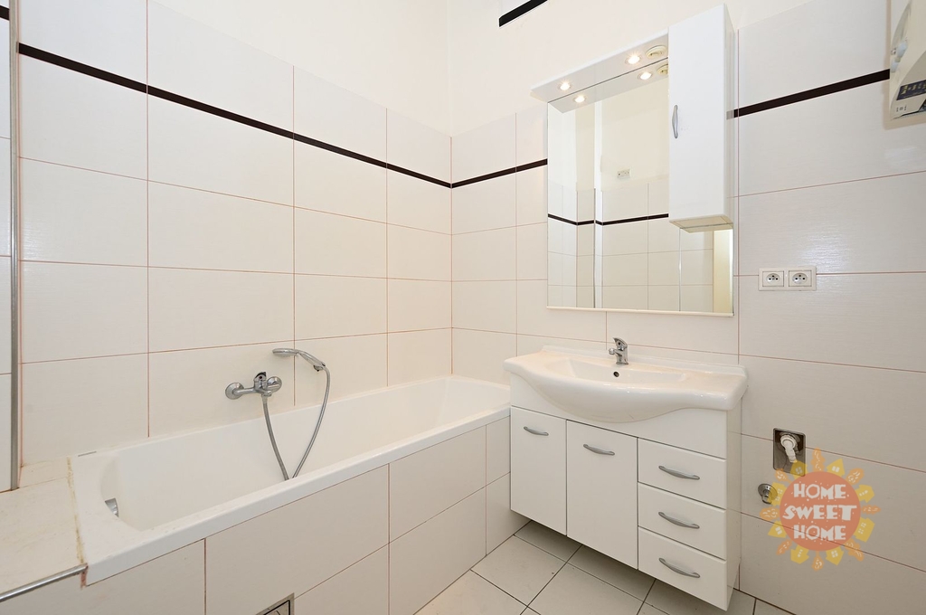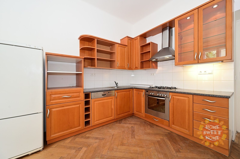 Byt sestává ze vstupní haly, prostorného obývacího pokoje s kuchyní, dvou průchozích pokojů s orientací do ulice a dalších dvou samostatných pokojů do dvora. Byt má dvě koupelny – jednu s vanou, jednu se sprchovým koutem a WC a další samostatnou toaletu. Byt je vybavený kuchyňskou linkou s elektrickým sporákem. troubou, myčkou nádobí a lednicí s mrazákem. Dům je ve velmi dobrém a udržovaném stavu – po rekonstrukci společných prostor, včetně nového výtahu.