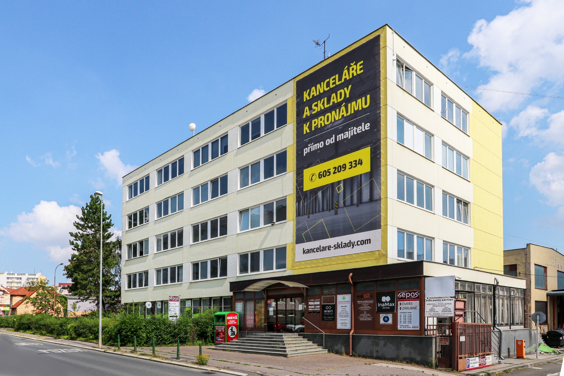 Víceúčelový objekt vhodný pro menší firmy a živnostníky umožňuje využití kancelářských a skladových prostor, které je možné propojit. Stanice tramvaje, která je v docházkové vzdálenosti, umožňuje snadné dopravní spojení do centra Prahy.