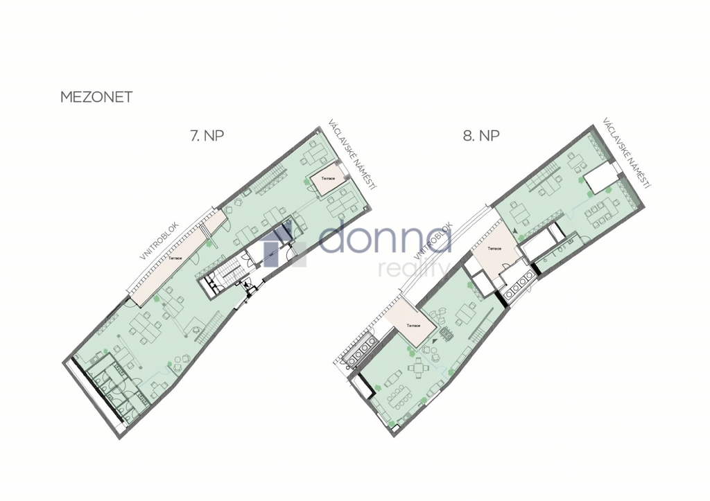 Nabízíme k pronájmu jedinečný mezonetový prostor o rozloze 511 m2 se čtyřmi terasami, v samém srdci české metropole, na lukrativní adrese v horní části Václavského náměstí.