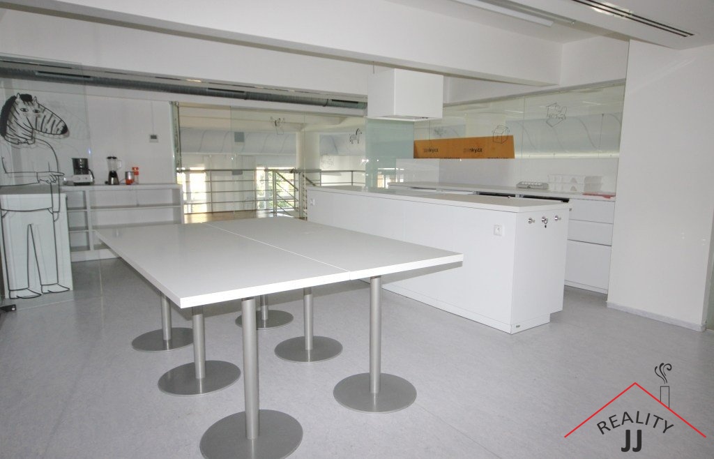Interiér je v tuto chvíli řešen jako open space s vyvýšenou galerií, kde jsou především jednací místnosti a odpočinková zóna. Maximální plocha pronájmu 985 m2 je dělitelná na menší celky o požadované velikosti a dispozičně upravit dle potřeby budoucího nájemce.