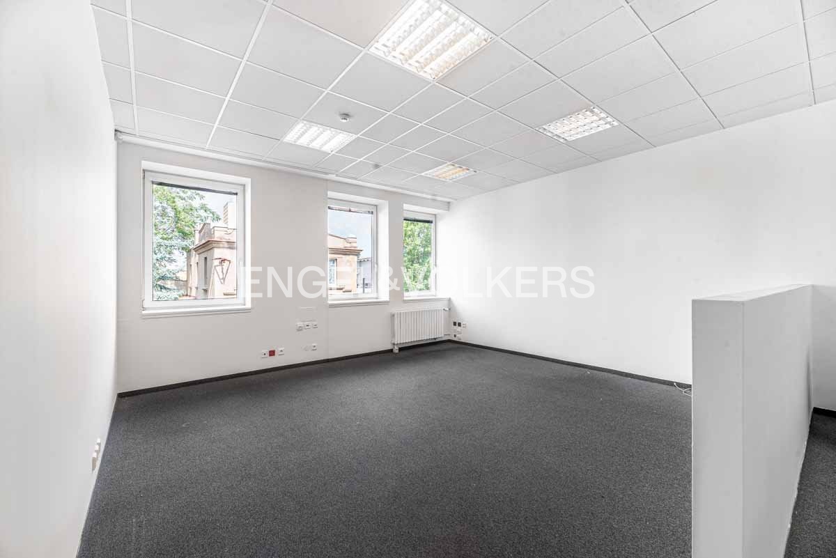 Vcházíte do openspace, ve kterém se nachází jedna samostatná uzavíratelná místnost. Světlost kanceláři dodávají velká okna. Součástí vybavení jsou zátěžový koberec, kancelářské osvětlení a klimatizace. V ceně jednotky je úklid, recepce, parkování a ostraha. Samozřejmostí je sdílená kuchyňka a oddělené toalety. Jistě oceníte dvě parkovacích stání za závorou. Pro bližší informace neváhejte kontaktovat makléře.