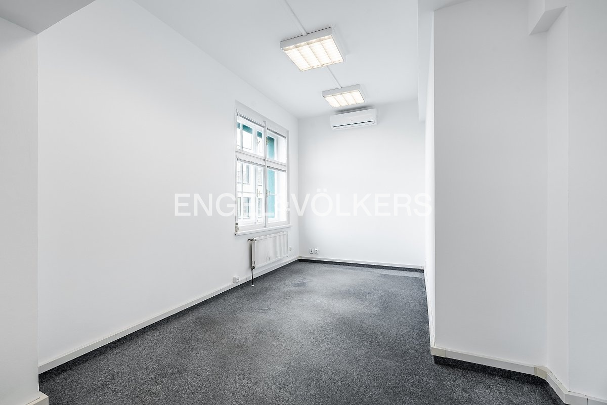 K pronájmu nabízíme světlé kancelářské prostory o třech samostatných místnostech, umístěné v udržovaném činžovním domě. Jednotka má vlastní vstupní předsíň, ze které se vstupuje do jednotlivých kanceláří. Součástí zázemí je kuchyňka a toalety. Prostory jsou v dobrém stavu – na podlahách jsou koberce, okna jsou otevíratelná a místnosti působí příjemně a klidně. Díky členění jsou kanceláře vhodné pro menší firmu, advokátní či účetní kancelář, poradenské služby nebo jako sdílené pracovní prostory. Dům se nachází v klidné lokalitě s dobrou dostupností MHD a možností parkování na dvoře.