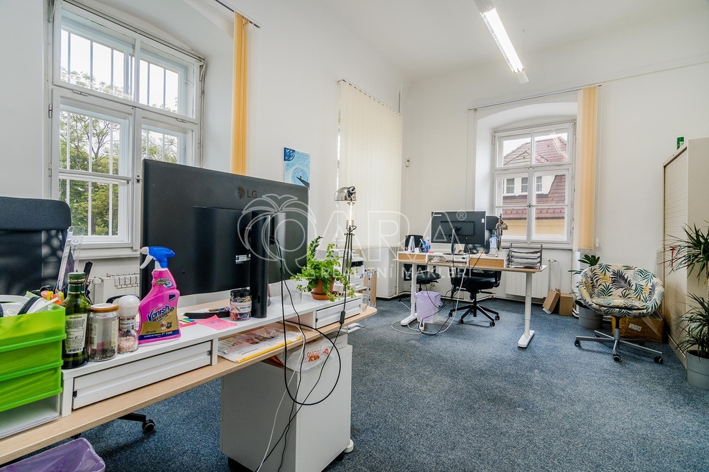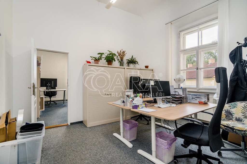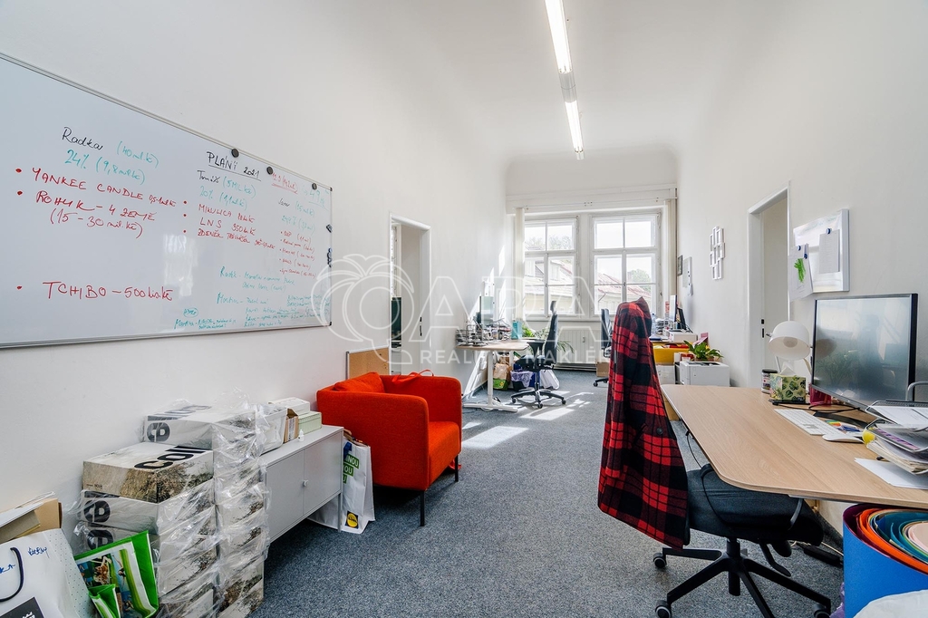 Kancelář vznikla v novobarokní budově, jejiíž historie sahá do 13. století, respektive 17. století, kdy byla přestavena z tvrze na zámek. Prostory disponují 10-ti samostatnými kancelářemi, které lze však vzájemně procházet, tudíž můžete firemní tým efektivně rozmístit, tak aby jednotlivá oddělení mohla mezi sebou efektivně komunikovat a spolupracovat, viz přiložený půdorys v inzerci. Dále je k dispozici malá místnost přístupná z haly, sloužící jako serverovna. Kuchyňka je mezi kancelářemi. Přístupná je velká terasa, kterou mohou nájemníci využívat k odpočinku, ale třeba i ke kancelářské práci na čerstvém vzduchu. V rámci nájmu můžete v areálu zámku parkovat až 6 automobilů.