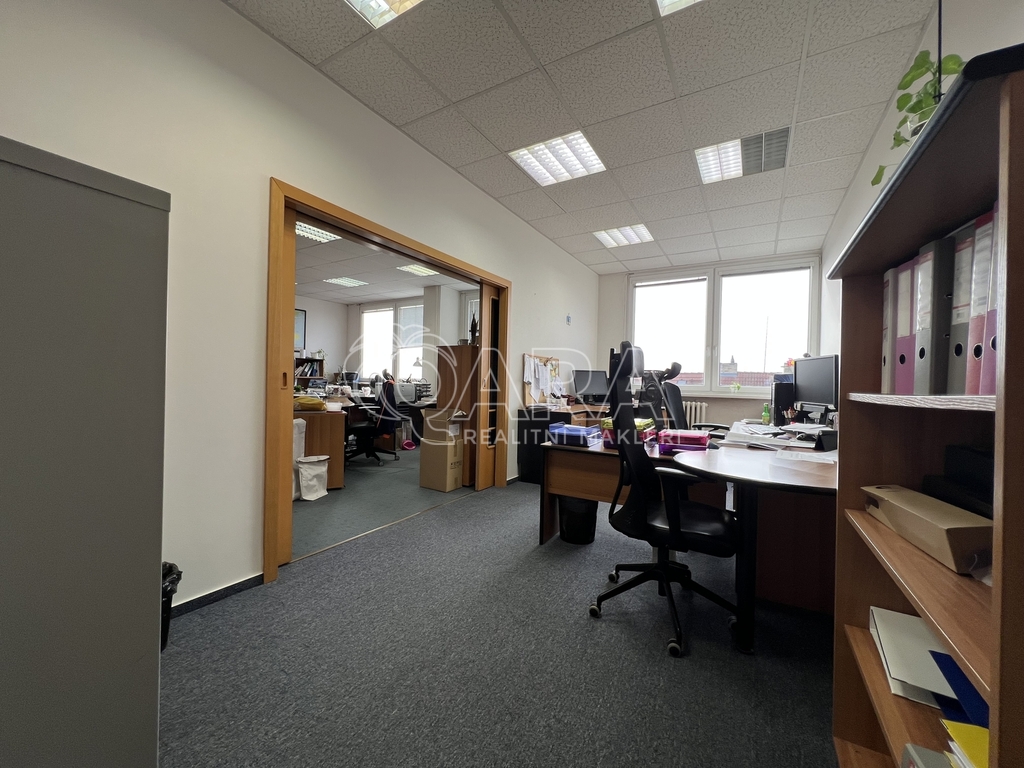 Jde o 9 moderních, plně zařízených prosklených kanceláří se zázemím ( plně vybavená kuchyňka, pánské a dámské toalety, serverovna), kde je možno zřídit až 33 pracovních míst. Součástí inzerátu je 3D prohlídka (stisknout kolečko "spustit prohlídku"), jejíž součástí je i 3D půdorys.