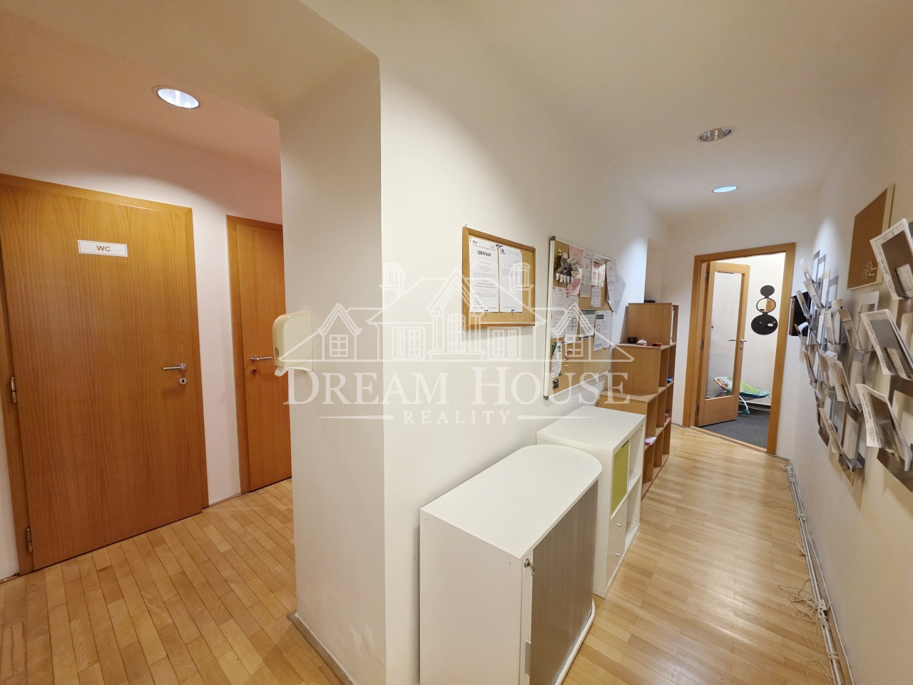 Prostory sestávající z prostorné vstupní chodby s kuchyňským koutem, 3 samostatných kanceláří (každá cca 17m2), samostatné toalety s umyvadlem, a koupelny se sprchovým koutem.