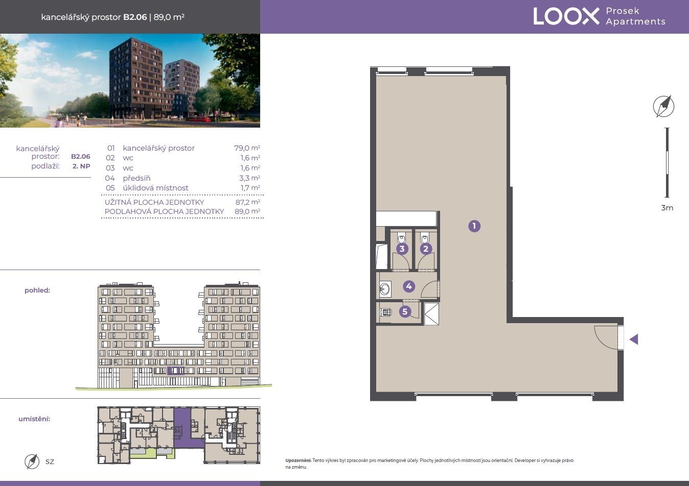 Nabízíme k dlouhodobému pronájmu nové a moderní kanceláře v docházkové blízkosti metro stanice Prosek v nové zástavbě bytového domu LOOX.