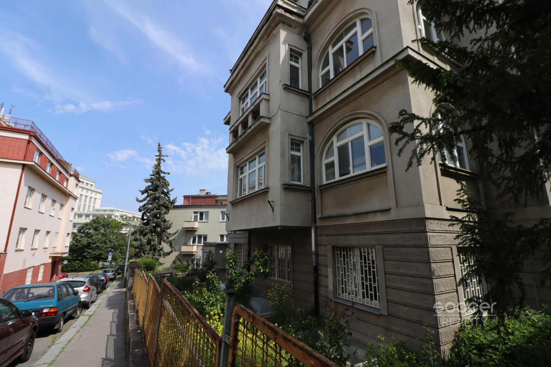 Balkon je přístupný z obývacího pokoje a má jižní orientaci. Dům leží v klidné ulici s vynikajícím dopravním spojením do centra Prahy tramvajemi, na metro B - Karlovo náměstí 5 minut.