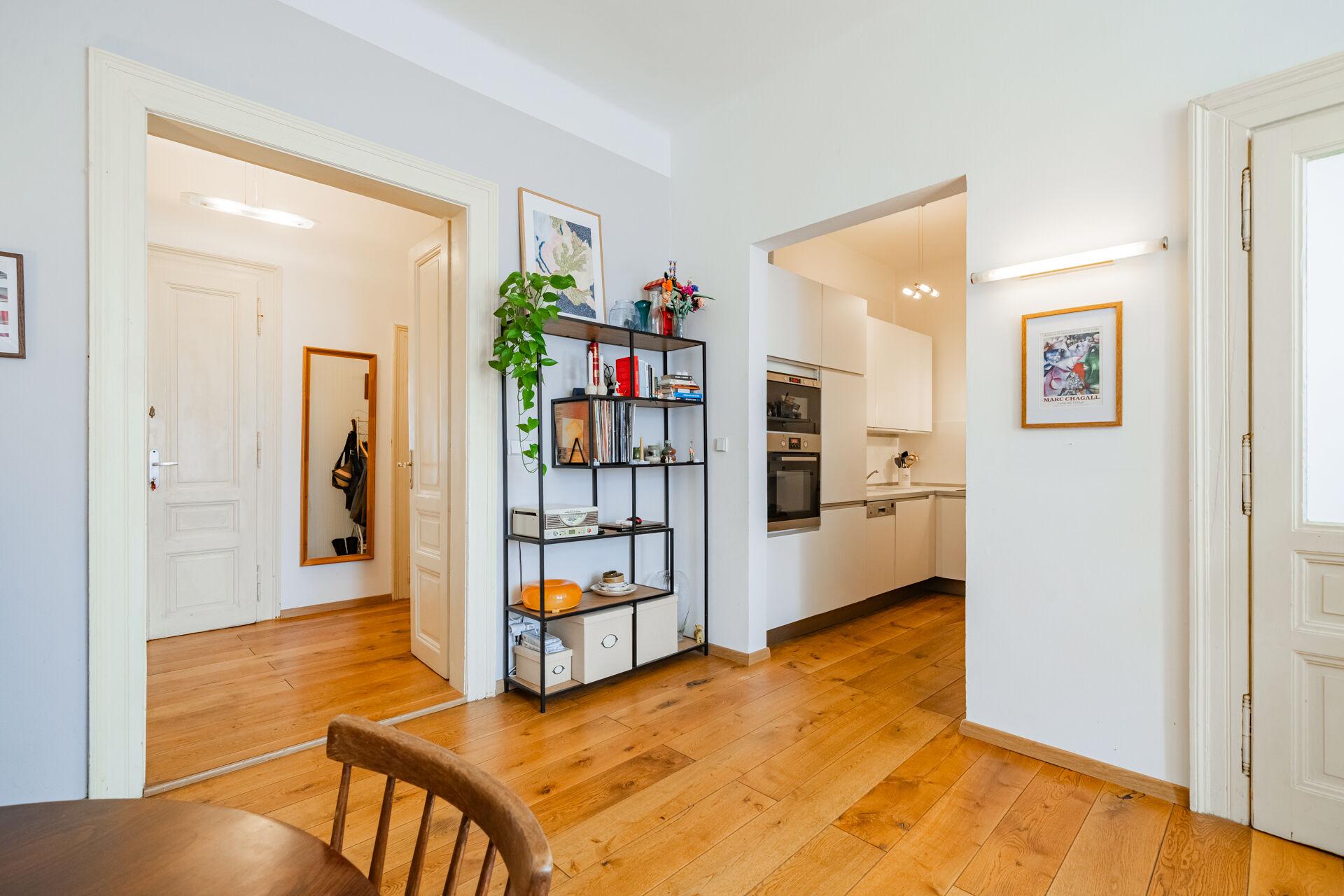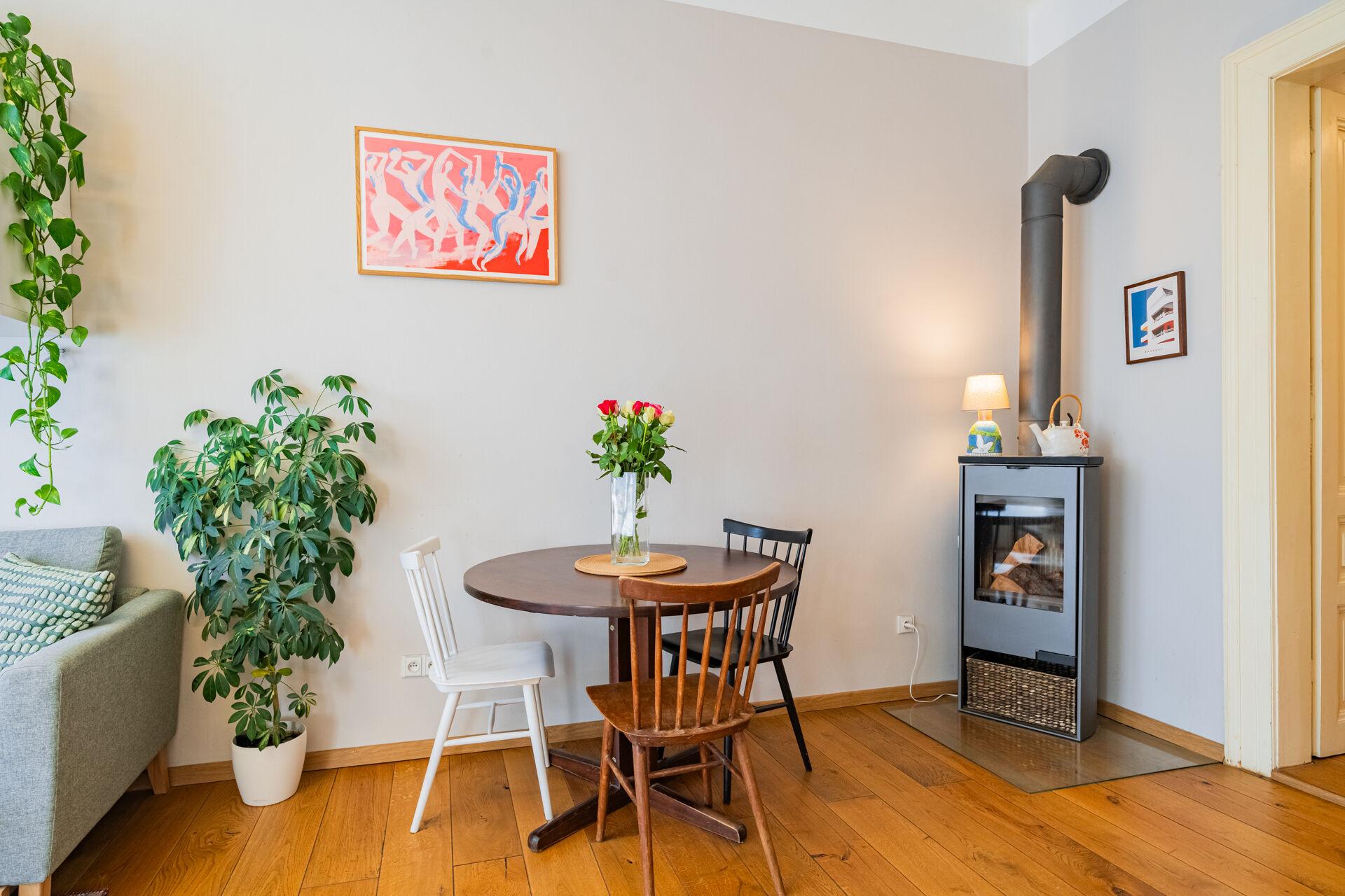 Nabízíme Vám tímto k pronájmu jedinečný byt 2 kk, 55 m2, v klasickém činžovním domě se secesními prvky po celkové rekonstrukci. Byt je umístěný ve třetím patře domu s výtahem. Byt také prošel celkovou, velmi povedenou a vkusně provedenou, rekonstrukcí. Byt má skvělé dispozice. Obývací pokoj se vstupem na balkon je propojený s kuchyňským koutem. Ten je vybaven kuchyňskou linkou na míru včetně spotřebičů. Dále je tu samostatná ložnice se skříněmi a manželskou postelí. V obývacím pokoji zůstává sedací souprava. Koupelna s vanou. Na chodbě bytu je úložná komora. V bytě je poležena kvalitní dřevěná podlaha, která celý prostor velmi zútulňuje. Ohřev vody bojlerem, topení je zajištěno elektrickými přímotopy, ale je možné používat i krbová kamna, což velmi snižuje celkové náklady na topení a navíc zajišťuje neopakovatelnou atmosféru. V domě je výtah a vkusně opravené společné prostory. Pokud chcete důstojné bydlení v širším centru Prahy s dostupností MHD, kompletní sítě obchodů a služeb, tak se jedná o tu pravou nabídku pro Vás.