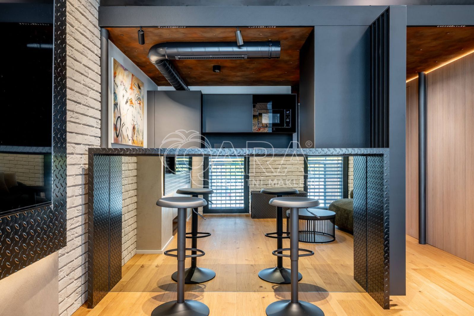 Nadstandardní byt s důrazem na detail nabízí celkovou podlahovou plochu 43 m + spací patro o velikosti 10 m (s výškou stropu 130 cm), balkon 3 m a sklep 3 m. Nachází se v moderním projektu v srdci jedné z nejžádanějších pražských čtvrtí.