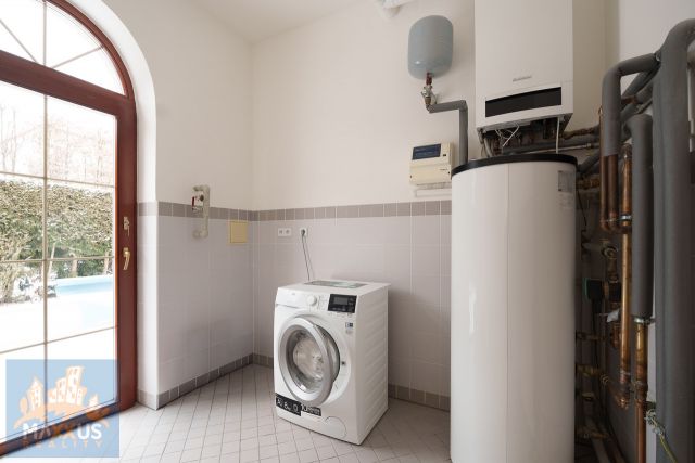 Nabízíme dlouhodobý pronájem luxusní vily nacházející se v atraktivní lokalitě Prahy 6 – Nebušice, která je součástí uzavřeného luxusního vilového komplexu Villas Šárka. V areálu o celkové rozloze 5 500 m2 se nachází sedm rodinných vil o obytné ploše 243 m2 s dvojgaráží a terasou o ploše 12 m2. Každá vila má svoji soukromou zahradu s vyhřívaným bazénem.Nabízená vila o dispozici 5+1/T je postavena na pozemku o celkové rozloze 484 m2 (zastavěná plocha 156 m2, zahrada 328 m2). K nastěhování volná ihned. Pro zajištění maximálního komfortu je vila vybavena podlahovým topením a klimatizací. Plně vybavená kuchyňská linka se spotřebiči. Prostorný obývací prostor s krbem a přímým vstupem na zahradu. Luxus vily podtrhují tři koupelny a tři toalety (z toho dvě samostatné).Mezi další vybavení vily patří satelitní příjem (anténní rozvod do všech obytných místností včetně kuchyně a terasy), zabezpečovací zařízení s připojením na pult centrální ochrany v celém domě (se třemi ovládacími místy s možností vypínat jednotlivé zóny), videotelefon propojený s vchodem a vjezdem do areálu, telefonní linka (rozvod po celém domě s možností zřídit ISDN/ADS, možnost vysokorychlostního širokopásmového internetu, prostorná terasa s elektricky ovládanou markýzou, automatická závlaha zahrady, bazén 5x3x1,5 m vybaven podvodním osvětlením, protiproudem, pohodlnými schody, solární plachtou a pískovou filtrací, dům je postaven z cihel, kvalitní zateplení celé stavby, dřevěná okna s izolačním dvojsklem, péči o zahradu a bazén zajišťuje odborný servis.V těsném sousedství se nachází The International School of Prague, v blízkém okolí základní i mateřská škola, zdravotní středisko, obchody, sportovní hala, tenisové centrum, Golf klub, přírodní rezervace Divoká Šárka, koupaliště Džbán. Veškerou další infrastrukturu poskytuje nedaleké centrum Dejvic.Nájemné: 110 000 Kč měsíčně.Fixní služby: 12 000 Kč měsíčně.Záloha na energie: 16 000 Kč měsíčně.Kauce: 220 000 Kč.Provize RK: 110 000 Kč + 21% DPH.