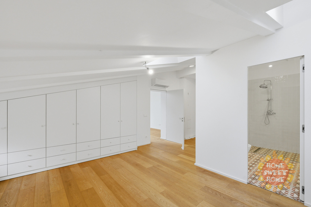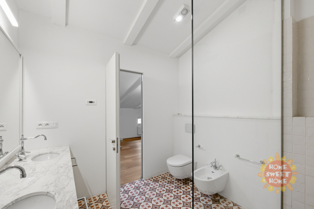 Moderní byt sestává ve spodním patře z prostorného obývacího pokoje s kuchyňským koutem s vestavěnými spotřebiči (myčka, sklo-keramická varná deska, lednice, vinotéka) a přístupem na terasu, dvou ložnic, každá s vlastní koupelnou a šatnou. V patře jsou dvě galerie, tři samostatné ložnice a další dvě koupelny. Možnost parkování v garáži. K dispozici je také sauna a fitness (za poplatek).