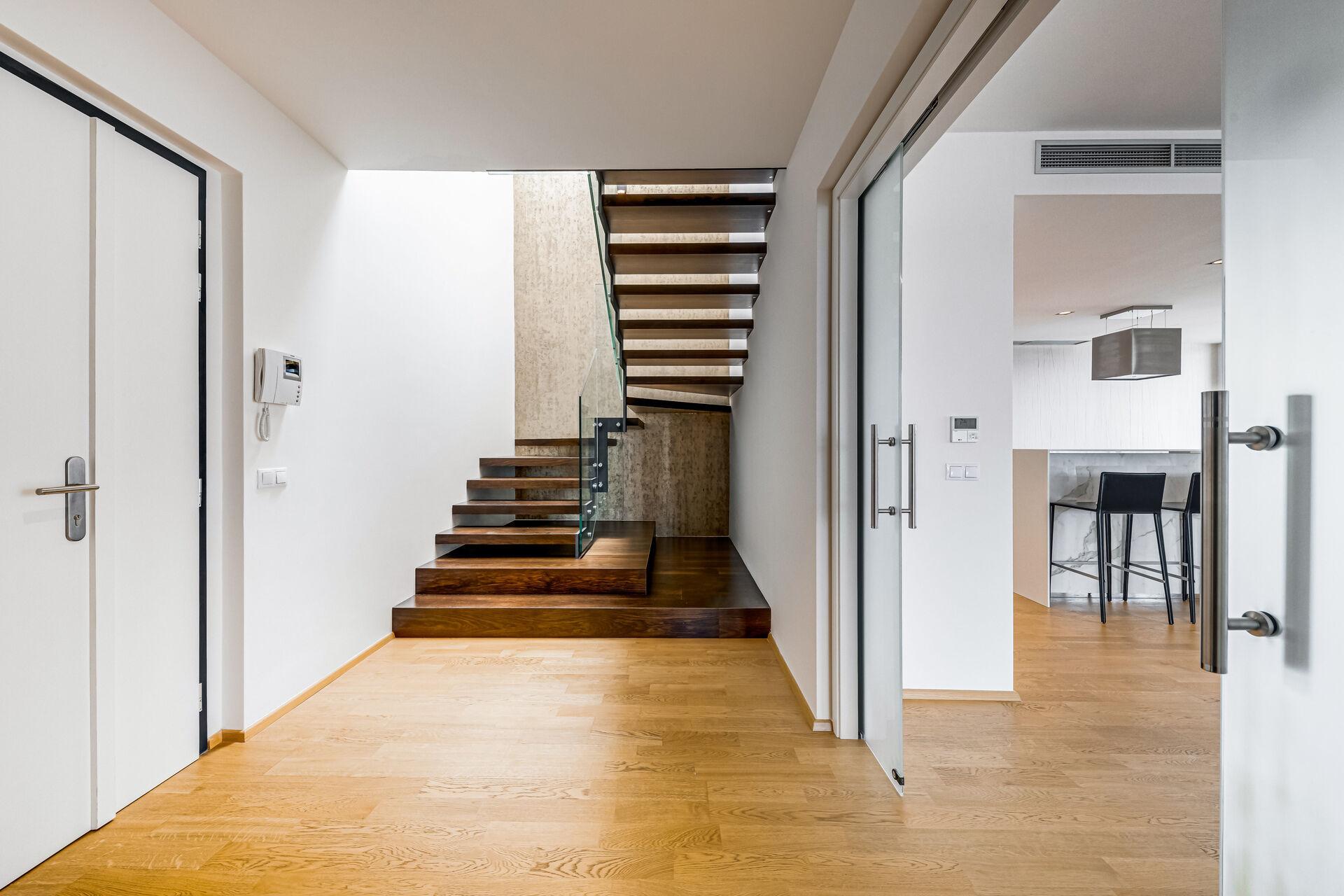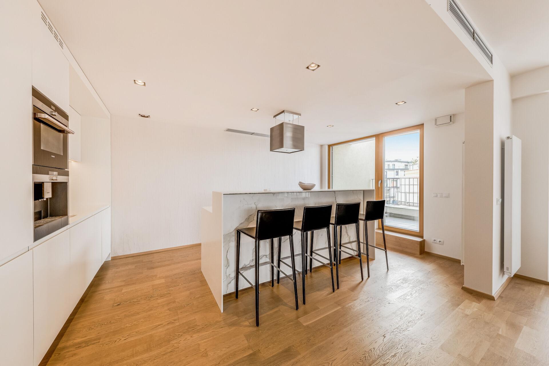 Interiér tohoto jedinečného prostoru je navržen v moderním stylu s důrazem na kvalitu. Každý detail bytu je pečlivě promyšlený a byt je vybaven špičkovými materiály.