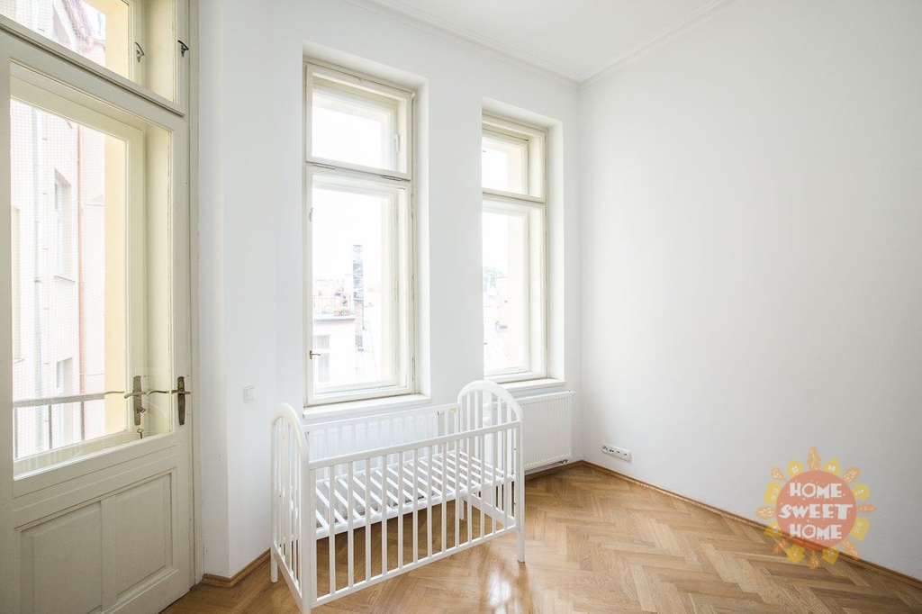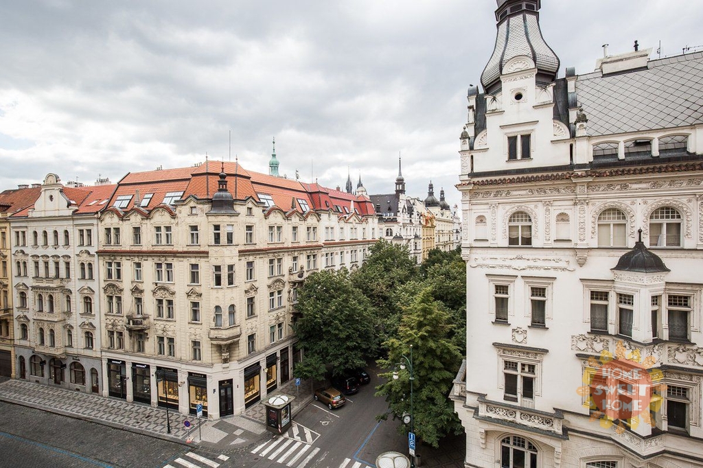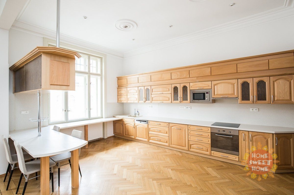 Byt sestává z předsíně, ze čtyř ložnic, obývacího pokoje, kuchyně a dvou ložnic. Na stropech jsou krásné štuky. Kuchyně je vybavena všemi spotřebiči. V bytě se nachází 2 koupelny - v jedné je toaleta a sprchový kout a v druhé vana, toaleta a sauna. Zaveden je bezdrátový internet, satelitní televize a telefon, nechybí klimatizace. Na podlahách jsou krásné zachovalé parkety. Perfektní lokalita s vynikající dopravní dostupností a občanskou vybaveností. Metro A Staroměstská 5 minut od domu. V okolí bytu se nachází množství kulturních památek, divadla či starobylý židovský hřbitov.