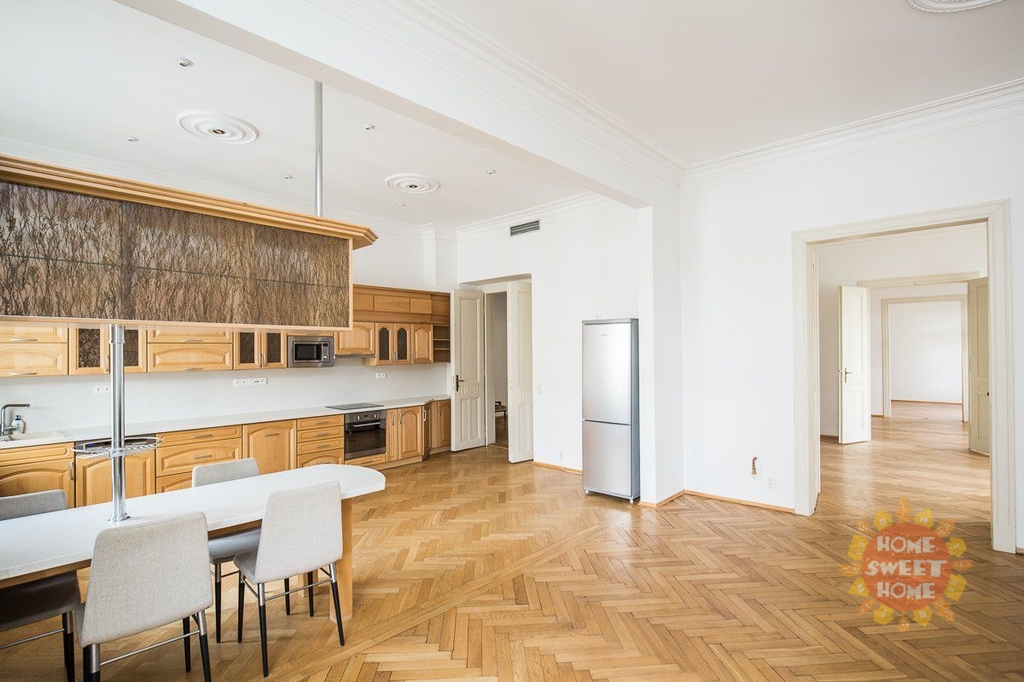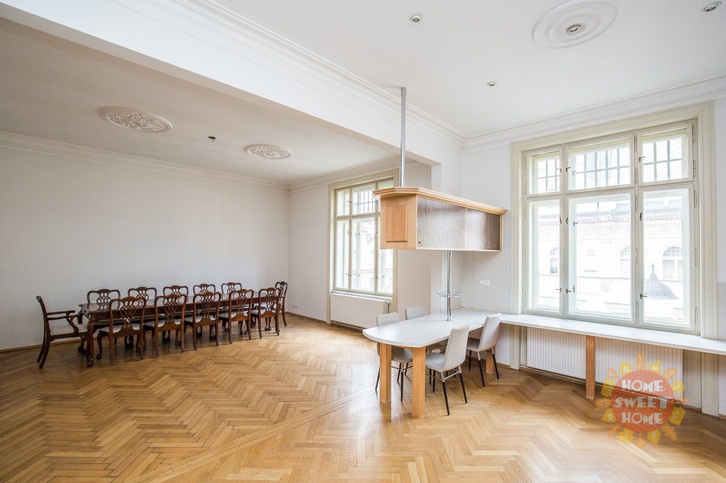 Nabízíme k pronájmu luxusní nezařízený byt o dispozici 5+1. Byt díky rozloze 200 m2 nabízí dostatek prostoru. Je situován ve 4. patře cihlového domu s výtahem v samotném centru Prahy nedaleko Staroměstského náměstí v nádherném domě na rohu Pařížské a Široké ulice.