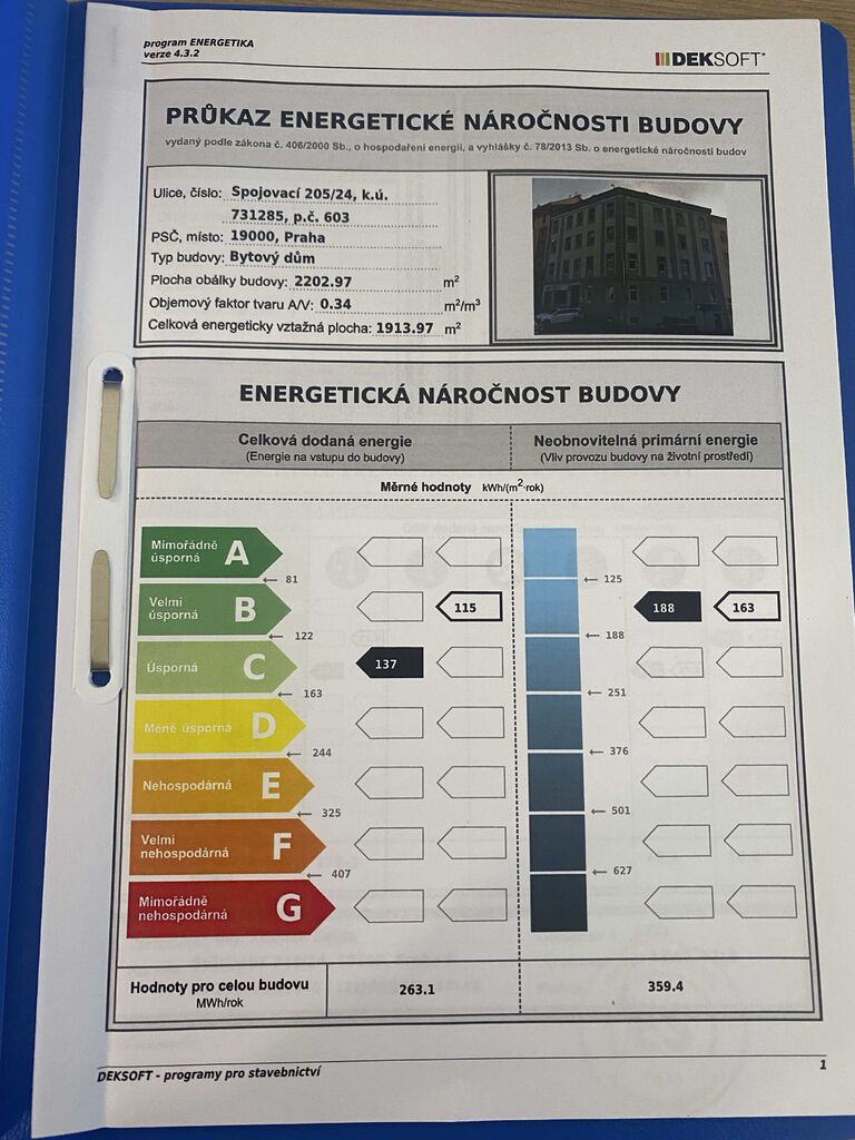 Průkaz energetické náročnosti budovy vydaný podle zákona č. 406/200Sb., o hospodaření energii, a vyhlášky č.78/2013Sb. má klasifikační hodnotu C - úsporná.
