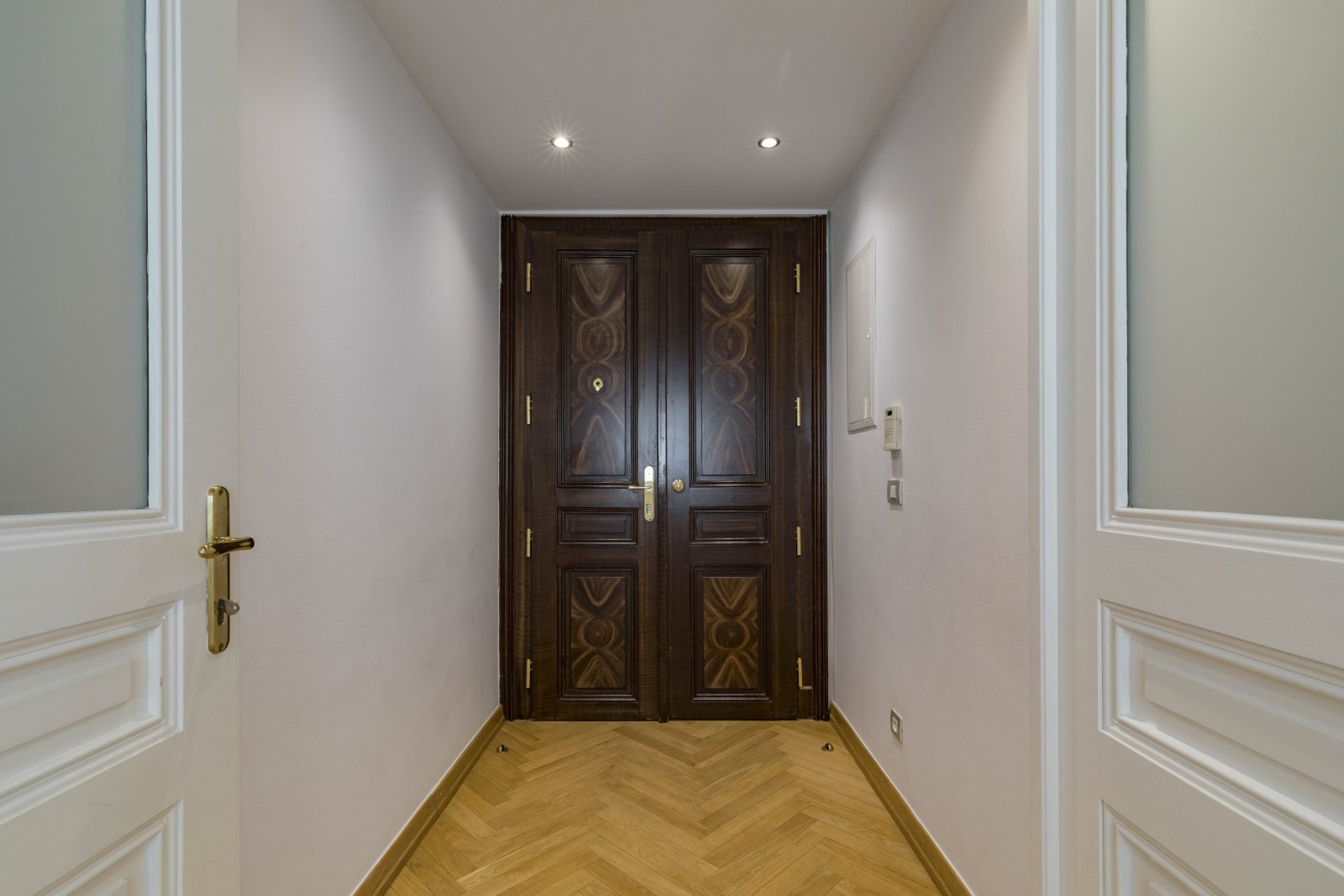 Nabízíme k pronájmu reprezentativní mezonetový byt 5+1 s terasou v 5. a 6. patře renovovaného neorenesančního činžovního domu s výtahem ve vyhledávané lokalitě Prahy 5 na rozhraní Malé Strany a Smíchova. Byt má celkovou plochu 286 m² a nabízí ve spodním patře vstupní předsíň, prostorný obývací pokoj, plně vybavenou kuchyň se spotřebiči (sklokeramická varná deska, trouba, lednice, myčka a mikrovlnná trouba), 1 ložnici s vlastní koupelnou s vanou, sprchou, toaletou a bidetem, šatnou a vstupem na balkon. Další dvě ložnice, obě se vstupem na balkon, 1 koupelnu s vanou, toaletou a bidetem, malou šatnu a komoru. V horním patře je otevřená místnost s možností využití jako ložnice pro hosty nebo herna pro děti, 1 koupelna se sprchou, toaletou a bidetem, prádelna s pračkou a sušičkou a terasa o velikosti 35 m² s pergolou, posezením s dechberoucím výhledem na Petřín a Pražský hrad. Byt je částečně zařízený a k jeho vybavení patří jídelní stůl a židle, postel a vestavěná skříň v ložnici, vybavená šatna, závěsy, regály v koupelně, klimatizace, alarm, videotelefon, bezpečnostní dveře, dřevěné parkety, mramorové podlahy v koupelnách, plynové topení. Na terase je venkovní nábytek a pergola, k rostlinám na terase je zaveden i systém zavlažování. V domě je denní recepce a možnost využít služeb údržbáře. K bytu náleží sklep. Perfektní poloha naproti Petřínským sadům, v docházkové vzdálenosti od Pražského hradu, Karlova mostu, Malostranského náměstí. V okolí domu je veškerá občanská vybavenost : restaurace, kavárny, bistra, obchody, zdravotnická zařízení. Jen pár kroků od Francouzského lycea, stanice tramvaje, metra Anděl a nákupního centra Nový Smíchov. Autem blízký nájezd na Pražský okruh a dálniční síť. Parkovací místo v garážích na zakladači vhodné pro nízká auta s výškou do 150 cm přímo v domě za extra poplatek 3.900 Kč + DPH/měsíc. Pro větší vozy je možné využít parkování v Drtinově ulici za extra poplatek. K bytu patří sklep. K dispozici ihned. Nájemce bytu má možnost stát se za poplatek členem wellness klubu Elliptico v rezidenci Ellipsis v Holečkově ulici.