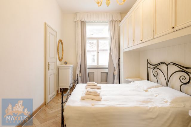 K dlouhodobému pronájmu nabízíme byt 3+kk o ploše 76,6 m2, situovaný ve 4. patře cihlového domu po kompletní rekonstrukci přímo v centru Prahy 1 - Nové Město, ulice Truhlářská. Jedná se o kompletně zařízený byt vysokého standardu bydlení s vybavenou kuchyní, vestavěnými spotřebiči - lednice, varná deska, trouba, mikrovlnná trouba, myčka na nádobí. Na podlahách parkety, v koupelně dlažba. Vysoký standard - perské koberce, porcelánové nádobí, křišťálové skleničky. Klimatizace, telefon, videotelefon u dveří. Výtah v domě, ostraha. Prestižní rezidenční bydlení v centru Prahy vhodné pro náročného klienta. Ihned volné k nastěhování.Nájemné: 1.700,- EUR / měsíc. Poplatky: 150,- EUR / měsíc. Enegie: 250,- EUR/ měsíc. Internet: 50,- EUR / měsíc. Kauce: 2x nájemné. Provize: 1x nájemné + 21% DPH.
