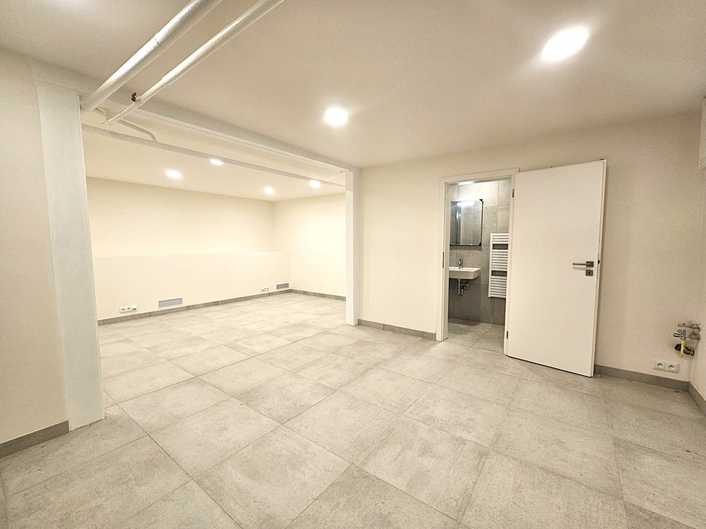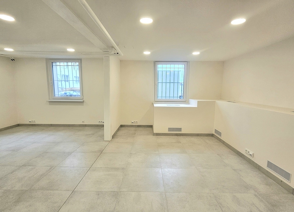 Prostor je po kompletní, právě dokončené moderní a vkusné rekonstrukci. Prostor sestává ze 2 otevřených místností, každá má okno zabezpečené mřížemi. U vchodových dveří je vybudována příprava na případnou kuchyňskou linku. V koupelně je sprchový kout, umývadlo se zrcadlem a vstup na samostatné WC. Na podlaze je velkoformátová dlažba. Prostor je vytápěný automaticky a zdarma díky rozvodům dálkového topení, které je umístěné v soklu s průduchy v zadní části prostoru. Díky tomu je v prostoru příjemné teplo a sucho bez měsíčních nákladů za vytápění. Parkování je možné na ulici (modré zóny) a nebo je možné si pronajmout až 2 garážová stání v suterénu sousedního domu.
