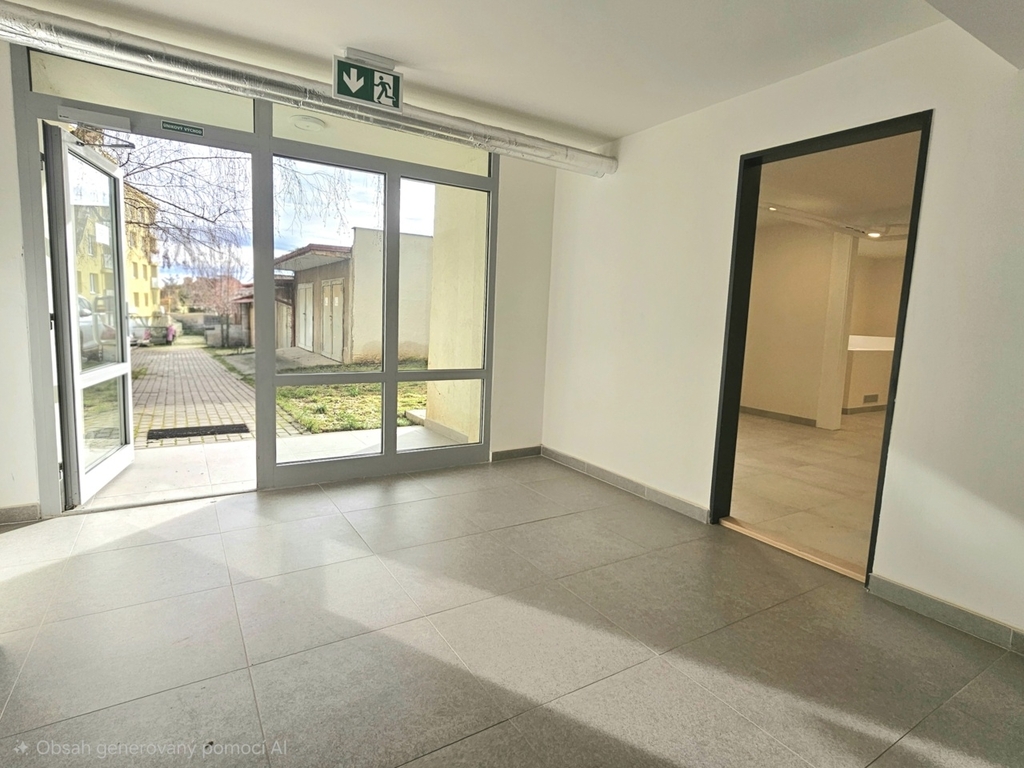 Pronájem nebytového prostoru o velikosti cca 46 m2, Praha 6 - Břevnov, ulice U Dělnického cvičiště. Prostor se nachází v přízemí kompletně zrekonstruovaného a zatepleného panelového domu s novým výtahem. Vstup do nabízeného prostoru je možný z ulice přes hlavní vstup domu a poté cca 10 schody do přízemí (v případě potřeby je v domě i výtah) a nebo bezbariérově ze zadního prostranství domu (viz foto). Orientace oken je na východ. Dům je velmi klidný a obývaný slušnou klientelou. Prostor je vhodný nejlépe pro kancelářské účely nebo podnikání s klidným provozem a minimální docházkou klientů.