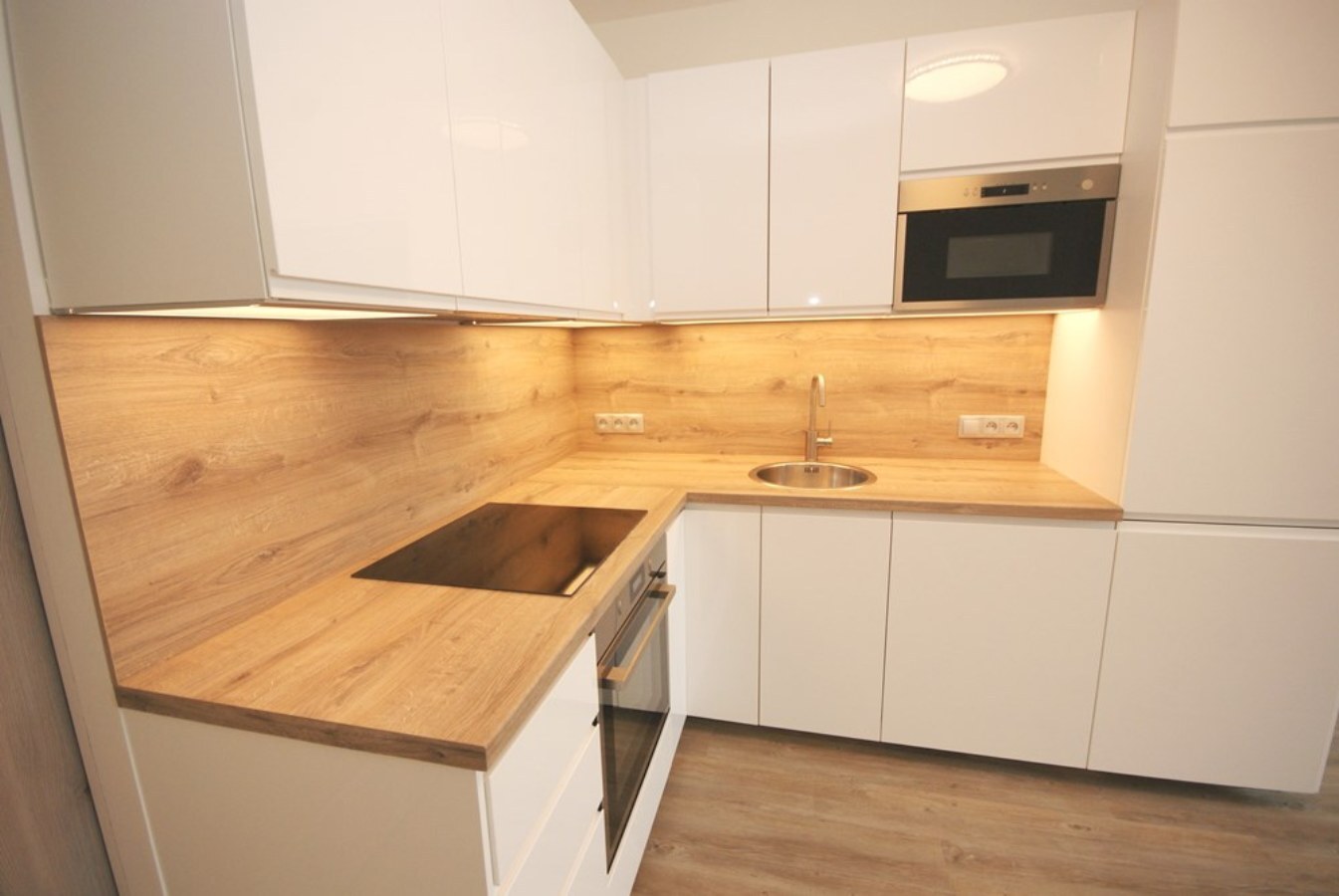 Nabízíme k pronájmu nezařízený 1+kk o výměře 35,8m2. 1+kk se nachází v 1. patře novostavby. V přízemí domu se nachází recepce s 24h službou, 4 výtahy, upravený vnitroblok - do budoucna vznikne kavárna. 1+kk je vybaven moderní kuchyňskou linkou s vestavěnými spotřebiči (indukční deska, horkovzdušná trouba, lednice s mrazákem, myčka na nádobí, mikrovlnná trouba). Dále v předsíni po celé délce stěny vestavěné šatní skříně se zrcadlovou stěnou, koupelna se sprchovým koutem, přípojkou na pračku a oddělenou toaletou. Podlahové vytápění, rekuperace vzduchu, alarm, video vrátný, bezpečnostní dveře. Byt se nachází u metra Českomoravská, tramvaj zastávky, OC Harfa, O2 aréna. Nájem 16.000,-Kč + služby 4.500,-Kč + elektřina bude převedena na nájemce. Kauce ve výši 21.000,-Kč a Provize RK ve výši jednoho nájmu + DPH. K nastěhování od května.