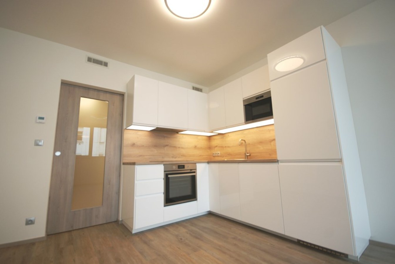 Nabízíme k pronájmu nezař. 1+kk o výměře 35,8m2. 1+kk se nachází v 1. patře novostavby. V přízemí domu se nachází recepce s 24h službou, 4 výtahy, upravený vnitroblok - do budoucna vznikne kavárna. 1+kk je vybaven moderní kuchyňskou linkou s vestavěnými spotřebiči (indukční deska, horkovzdušná trouba, lednice s mrazákem, myčka na nádobí, mikrovlnná trouba). Dále v předsíni po celé délce stěny vestavěné šatní skříně se zrcadlovou stěnou, koupelna se sprchovým koutem, přípojkou na pračku a oddělenou toaletou. Podlahové vytápění, rekuperace vzduchu, alarm, video vrátný, bezpečnostní dveře. Byt se nachází u metra Českomoravská, tramvaj zastávky, OC Harfa, O2 aréna. Nájem 17.000,-Kč + služby 4.500,-Kč + elektřina bude převedena na nájemce. Kauce ve výši 21.500,-Kč a Provize RK ve výši jednoho nájmu + DPH. K nastěhování od května.