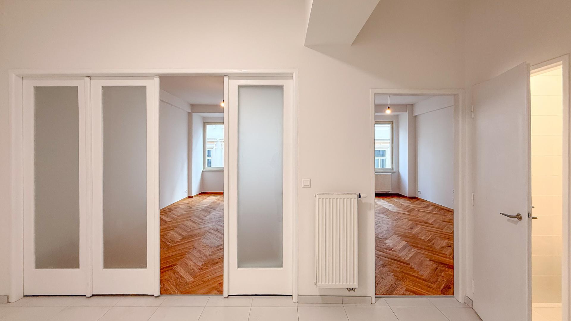 Krásné světlé místnosti s velkými, okny a dveřmi, prostor se dá báječně modifikovat - dle potřeby uzavírat i otevírat. K dispozici elektrický sporák, odsavač par, ostatní spotřebiče jsou zcela v režii nájemce. Na podlahách nové kvalitní parkety a v exponovaných částech dlažba. Za rohem Národní divadlo, Žofín, Střelecký ostrov, přes most na Petřín, zastávky tramvaje i stanice metra Národní. V roce 2026 byla provedena výměna oken v celém bytě za nová. I přes to musím upozornit, že ulice může být v nočních hodinách hlučná. Nájem 26.000,- Zálohy 4.120,- 1 osoba (teplo, TUV, voda, domovní služby) 5.740,-/2 osoby + elektřina na nájemce. Kauce 2 měs. nájmy včetně záloh.. Provizi neplatíte.
