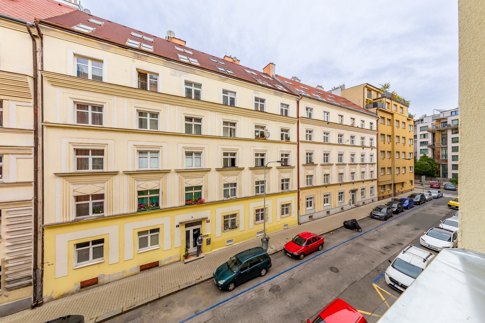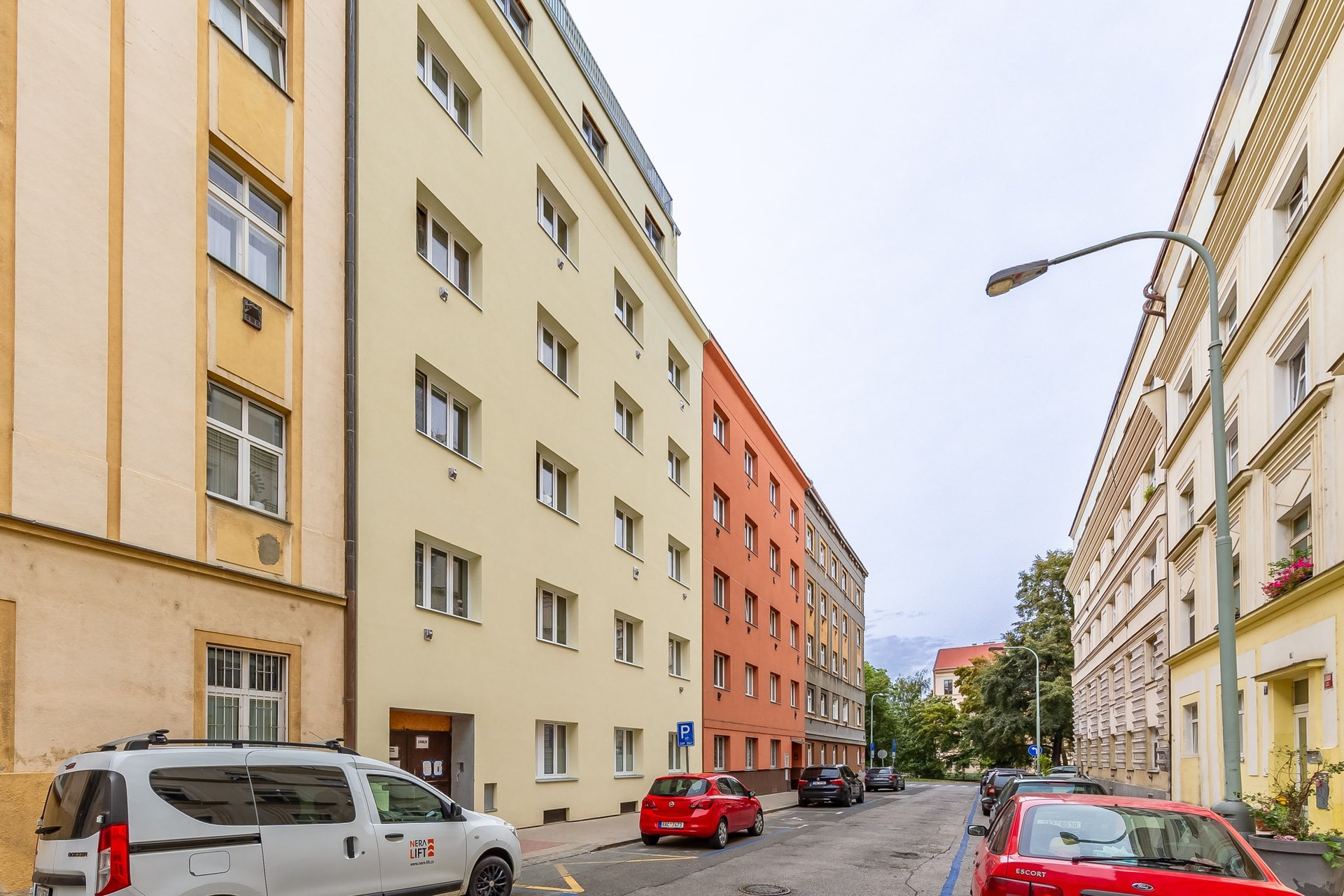 Byt se nachází v třetím podlaží zrekonstruovaného a zatepleného domu 3 minuty chůze od metra Palmovka, taktéž od dopravního uzlu autobusů a tramvají u metra Palmovka. V blízkém okolí je dostupná veškerá občanská vybavenost: 2 min. Albert, pošta, sportovní vyžití, fitcentra, park, cyklostezka atd. Na dvoře je soukromá zahrada pro celý bytový dům, kde lze trávit volný čas. V okolí je veškerá občanská vybavenost a skvělá dostupnost na MHD.