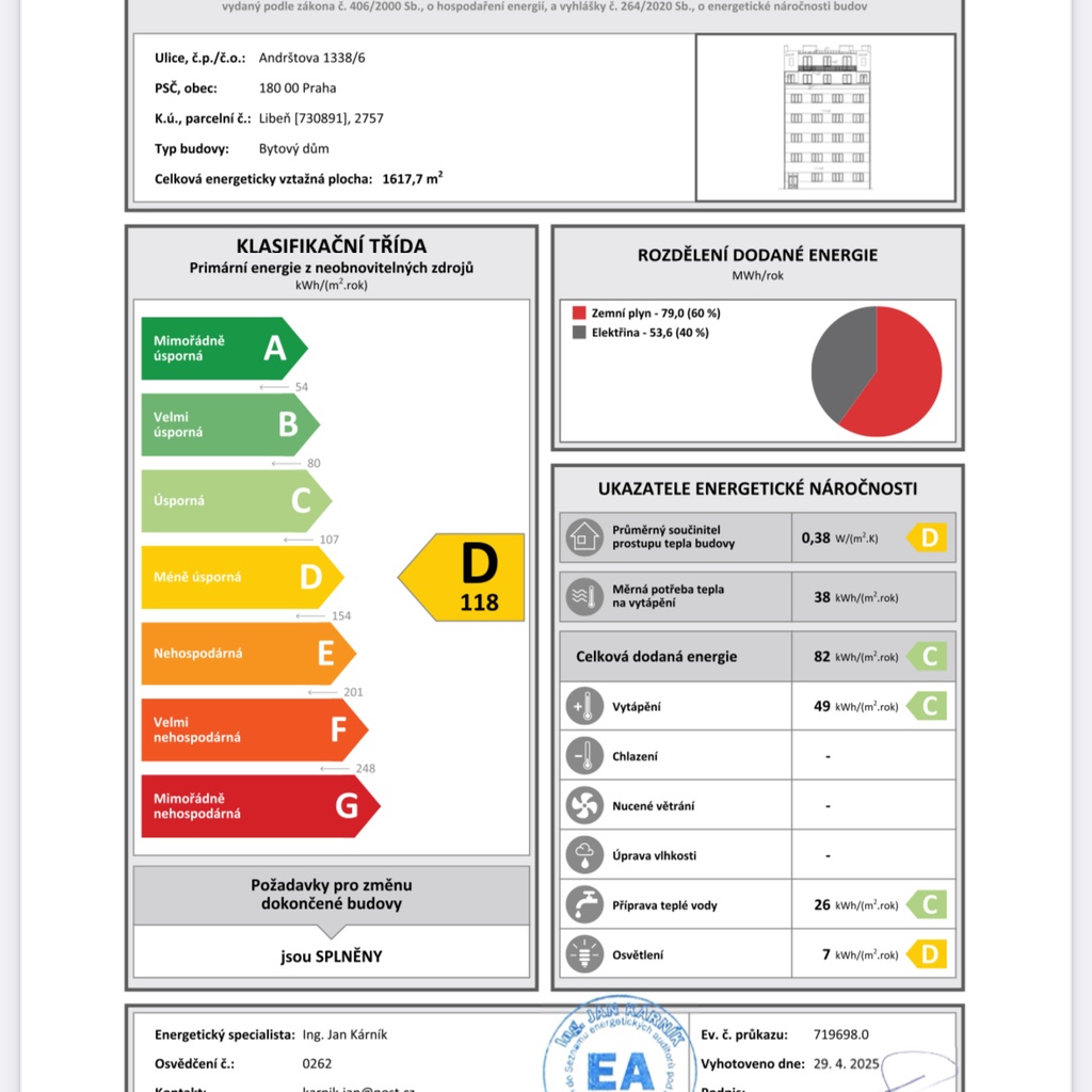Ukazatel energetické náročnosti budovy:118 kWh/m²