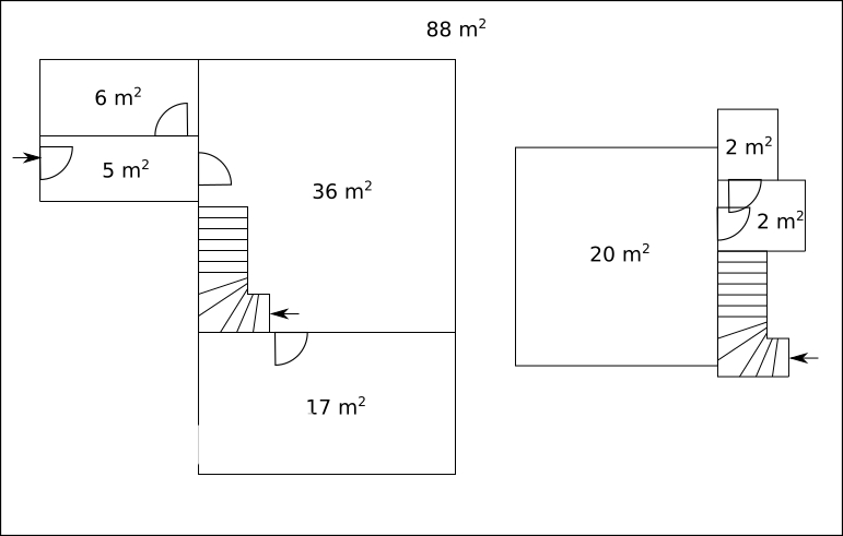 • Patro: místnost se skosenými stropy, oddělená dveřmi od schodiště a vlastní druhou toaletou s umyvadlem.