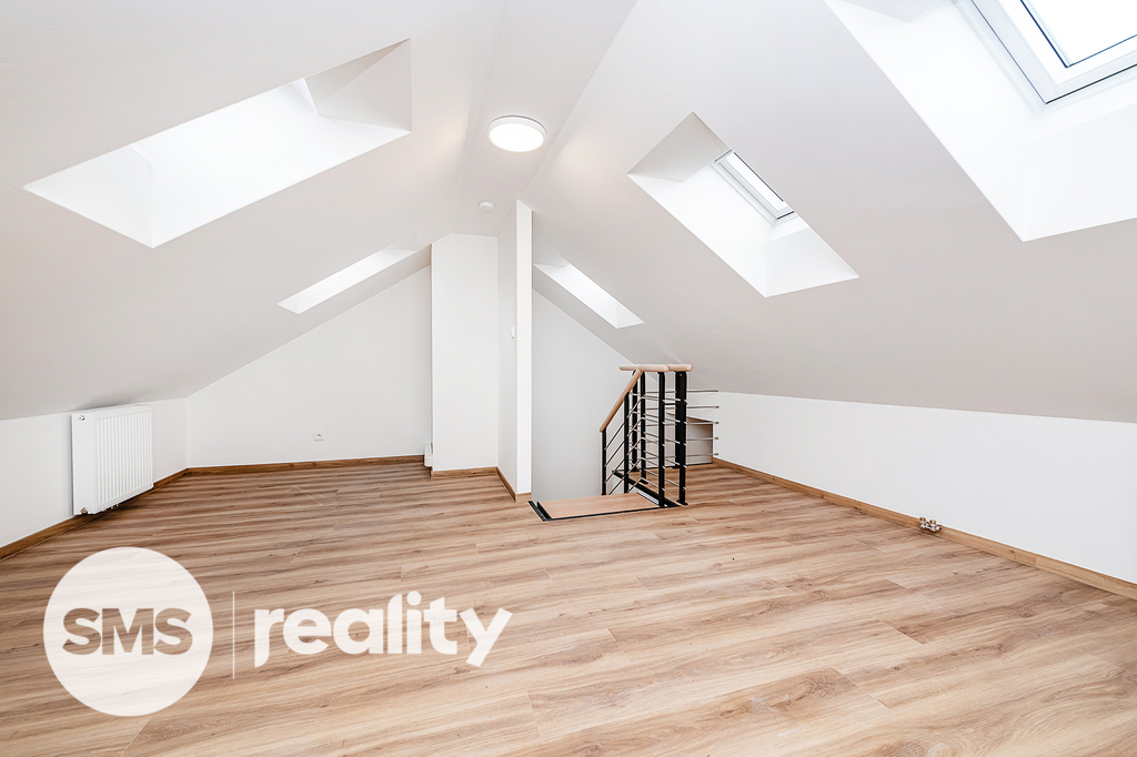 • Standardy: v bytě je instalována klimatizace v obou podlažích. Okna jsou nová, špaletová s izolačními dvojskly zajišťující výborné odhlučnění a tepelnou izolaci. Na podlahách je vinyl a velkoformátová dlažba. Vytápění je centrální a v domě je rozveden optický internet. Ve střešních oknech jsou elektrické žaluzie.