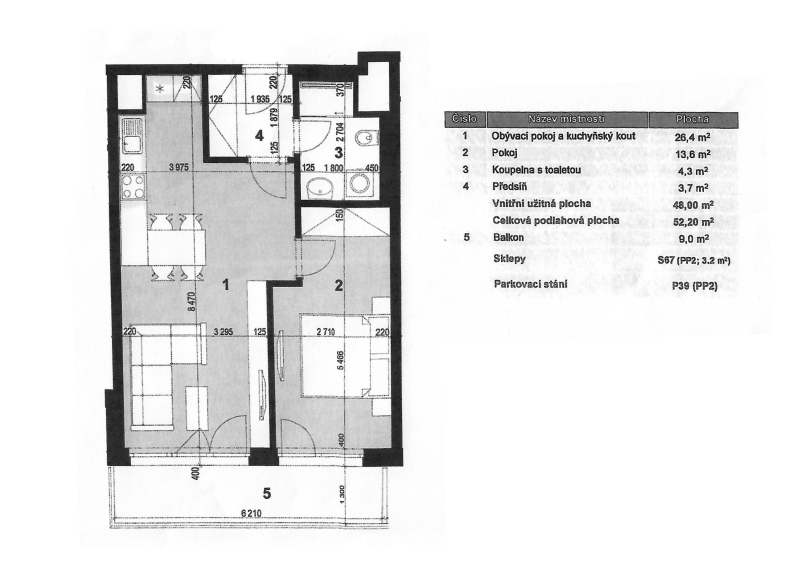 Za příplatek ve výši 2.500 Kč je možné si k bytu pronajmout parkovací stání v podzemních garážích a sklepní kóji.