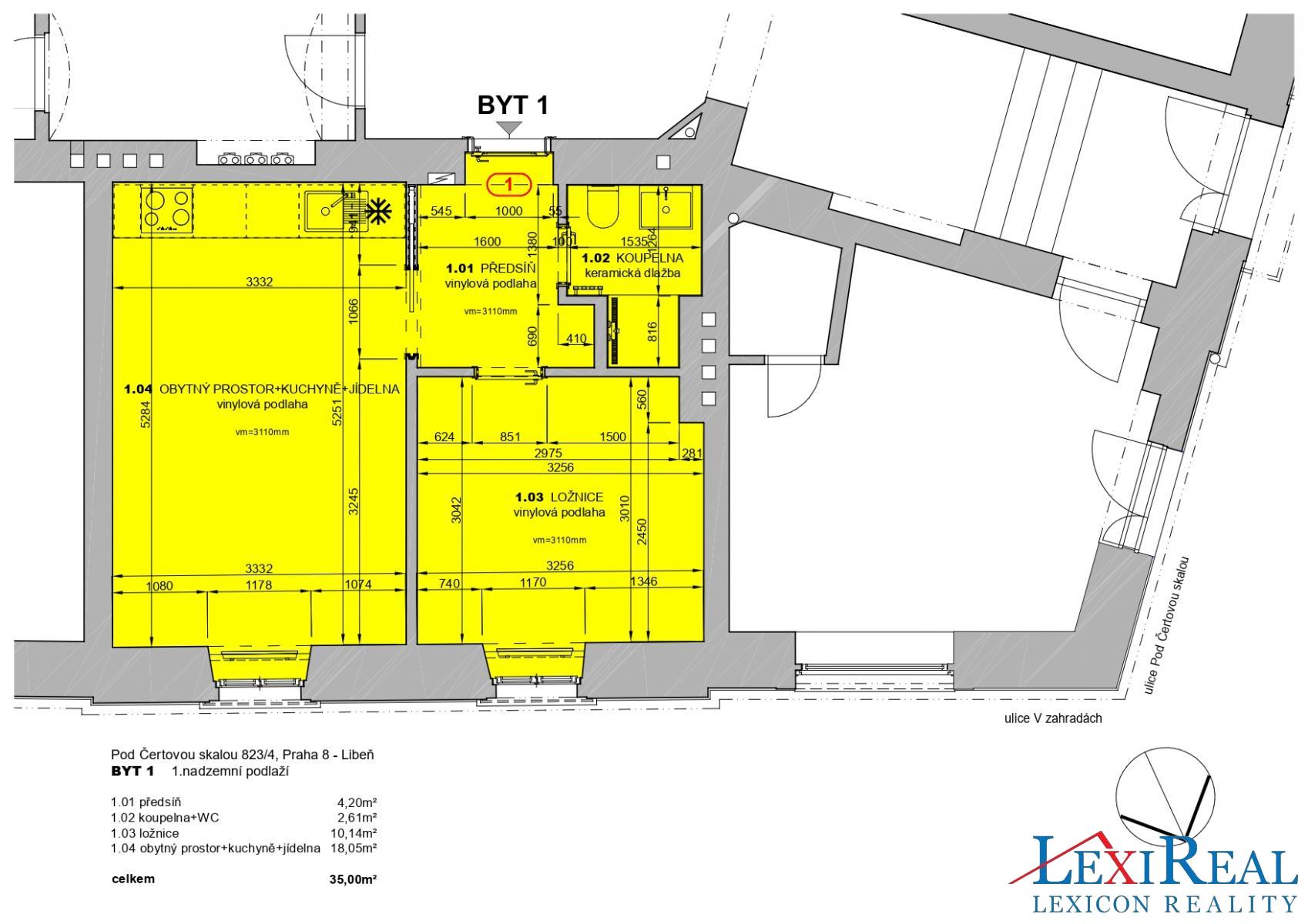 | Dispozice/podlahová plocha: | 2+kk/35 m² |