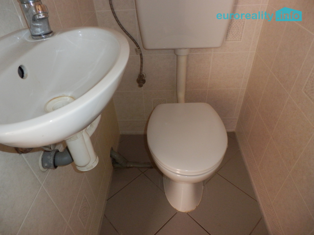 Skládá se z hlavní prodejní plochy 20 m2, zázemím je kuchyňka a toaleta. Prostor je čerstvě vymalovaný, v kuchyňce zůstává police a sektorový díl s umývadlem /ještě není na fotu/.