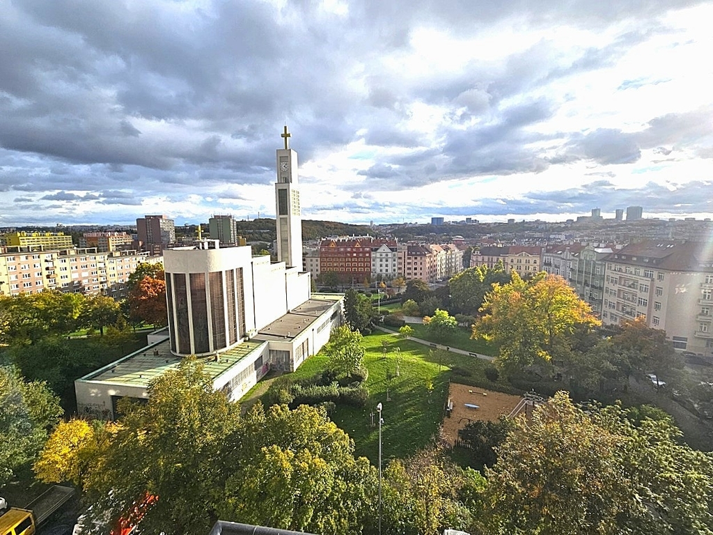 Pronájem bytu - velmi pěkný, slunný byt 55 m2 + balkón cca 3 m2, Praha 10 - Vršovice, ulice náměstí Svatopluka Čecha, 6.patro (poslední) v cihlovém domě s novým výtahem. Dům je velmi klidný a slušný, obývaný převážně samotnými majiteli bytů. Orientace bytu je na jih (obývací pokoj a balkón) s krásným výhledem do širého okolí a na sever (ložnice a kuchyně) do klidného zeleného vnitrobloku se vzrostlými stromy.
