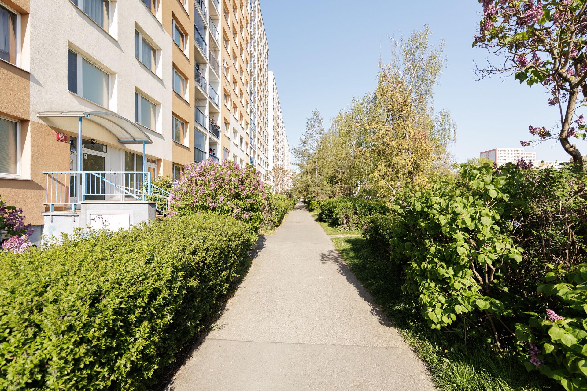 V bezprostředním okolí najdete kompletní občanskou vybavenost: Tesco, Penny, drogerii, trafiku, restaurace, večerky, vietnamské obchody, dětská hřiště, sportoviště i velké travnaté plochy. K dispozici jsou také výdejní boxy (AlzaBox, Z-Box, PPL, GLS, OX Point) a možnost pronájmu garážového stání (cca 2 000 Kč/měsíc). V blízkosti jsou dvě polikliniky s lékárnami.