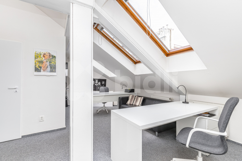 Bidli nabízí k pronájmu velmi zajímavě řešené, světlé, plně klimatizované, podkrovní kancelářské prostory, nacházející se v 6. NP činžovního domu s výtahem, ve velmi lukrativní lokalitě širšího centra Prahy, v Korunní 53, Praha 2 - Vinohrady, v pěší vzdálenosti stanice metra A Jiřího z Poděbrad, u zastávky tramvaje č. 10 a 16, Šumavská, nedaleko stanice metra A Flóra a nákupního centra Atrium Flóra. V lokalitě obklopené parky (Sady Svatopluka Čecha, Bezručovy sady), obchody, restauracemi.