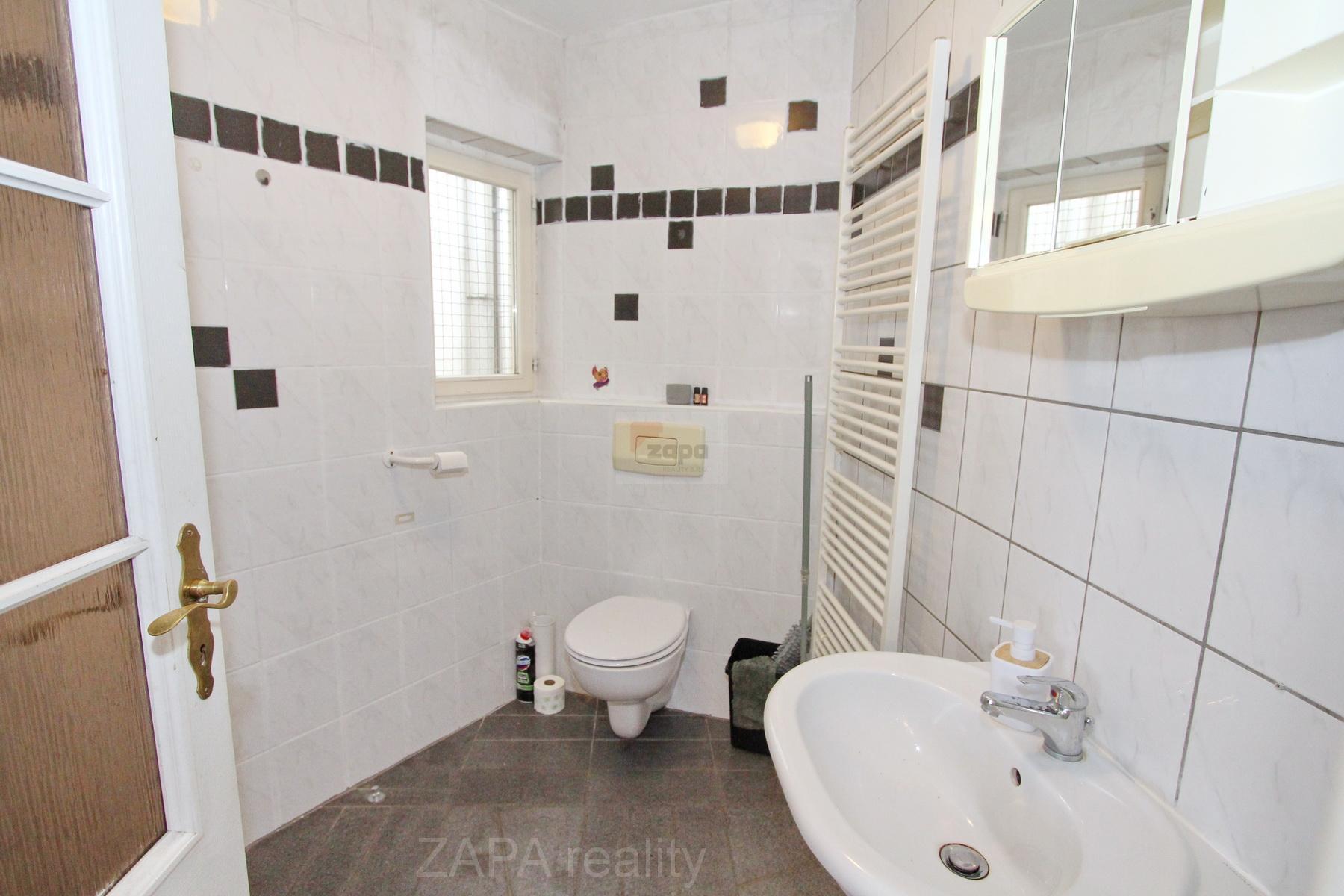 V koupelně je sprchový kout, topení a ohřev vody zajišťuje plynový kotel.