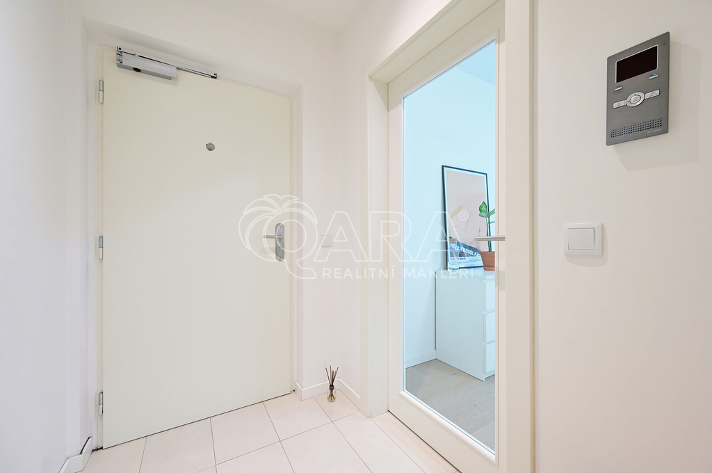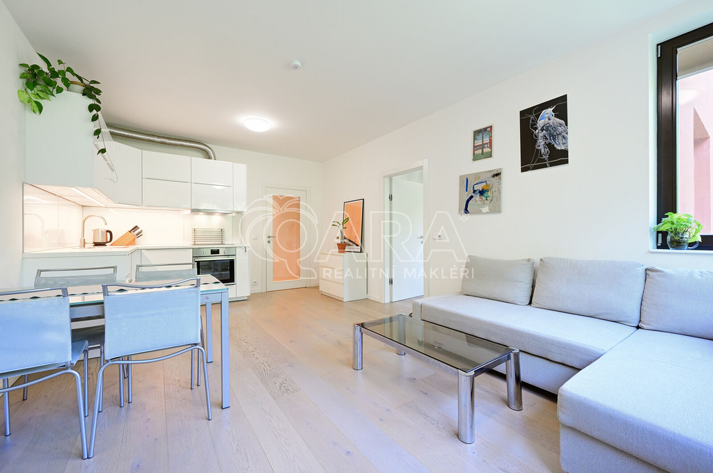Dovolte mi představit Vám moderní, plně zařízený byt o dispozici 2+kk a rozloze 47,1 m², k němuž náleží parkovací stání v zakladači přímo v bytovém domě.