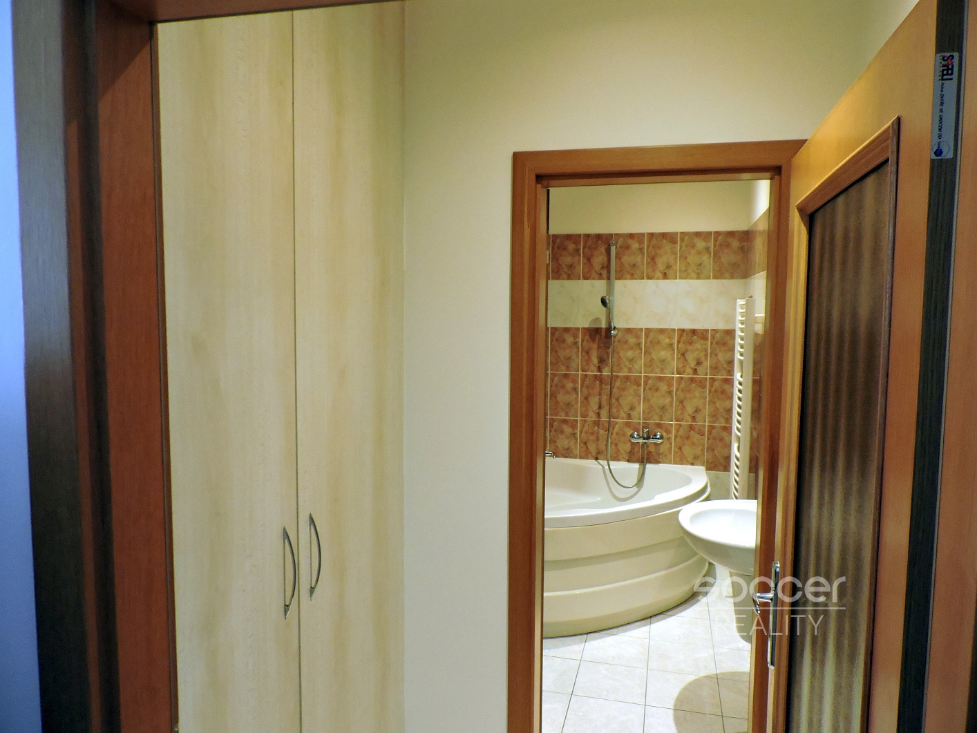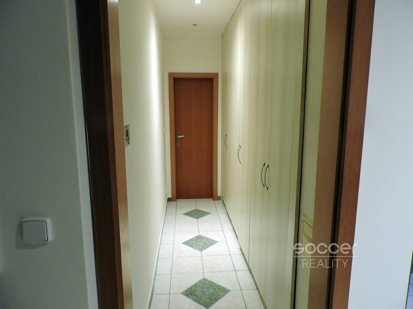 Celková plocha bytu 80 m2, z toho obývací pokoj 24 m2 (podlaha – parkety) s odděleným kuchyňským koutem 6 m2 (podlaha – dlažba), 1 x ložnice 16 m2 (podlaha – parkety), 1 x ložnice 16 m2 (podlaha – plovoucí laminátová), 2 x šatna, hala s úložným prostorem na patře, koupelna, WC, prostorná sklepní kóje. Byt je vybaven vlastním plynovým kotlem s etážovým topením a ohřevem vody, šatny zařízené skříňemi, v koupelně rohová vana, pračka.