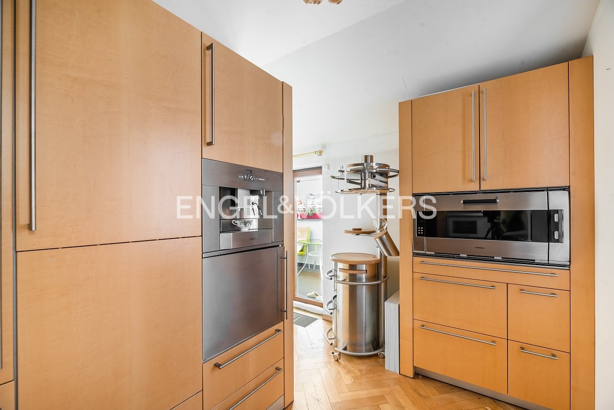 Byt disponuje dvěma oddělenými ložnicemi, šatnou, dvěma koupelnami a samostatnou toaletou pro hosty. Rozlehlý obývací pokoj s vysokým stropem má plochu 80 m2 a vede na terasu skrze francouzská okna. Klimatizace je k dispozici v ložnicích a v kuchyni. Střešní okna jsou vybavena dálkově ovládanými závěsy a otevíráním.