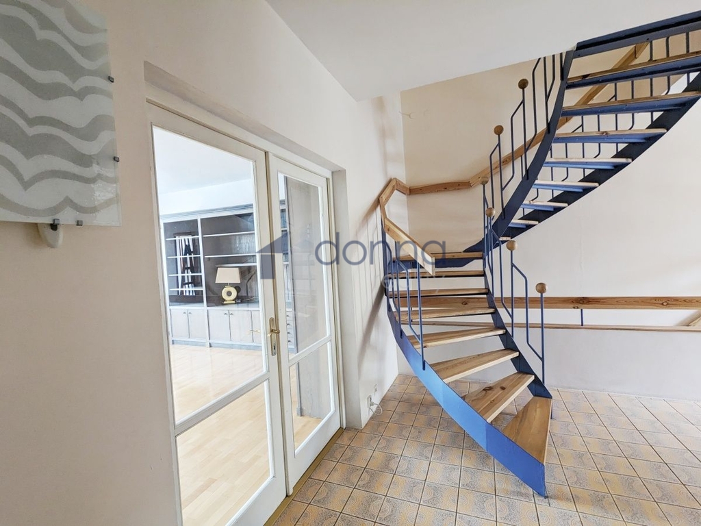 Z haly domu je schodištěm vstup do přízemí do prádelny, do technické místnosti, do dvougaráže (stání aut za sebou) a sklepa se vstupem do zahrady.