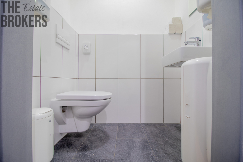 Kancelář o 59,15 m² je příjemně prosvětlená, vybavená kobercem a klimatizací a má plně bezbariérový přístup včetně výtahu. Na patře jsou k dispozici dámské i pánské toalety, ve vrchním patře navíc společná kuchyňka.