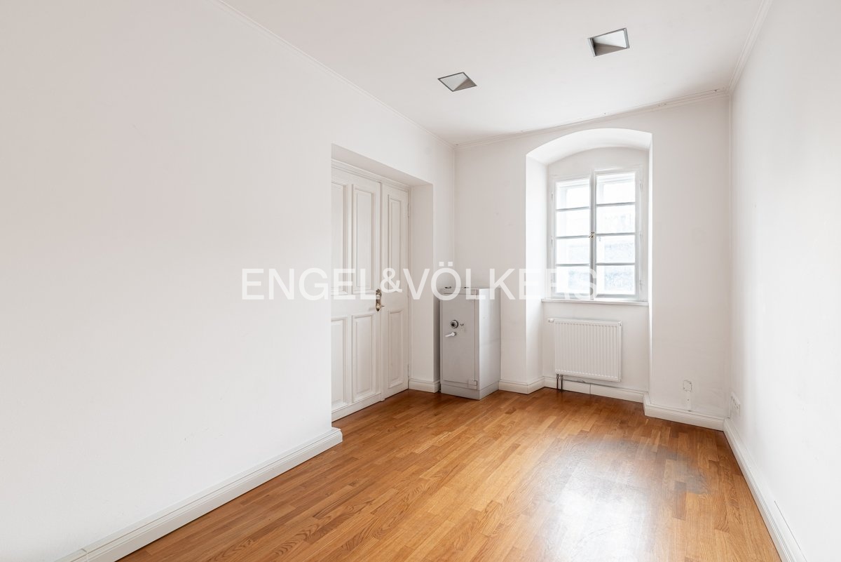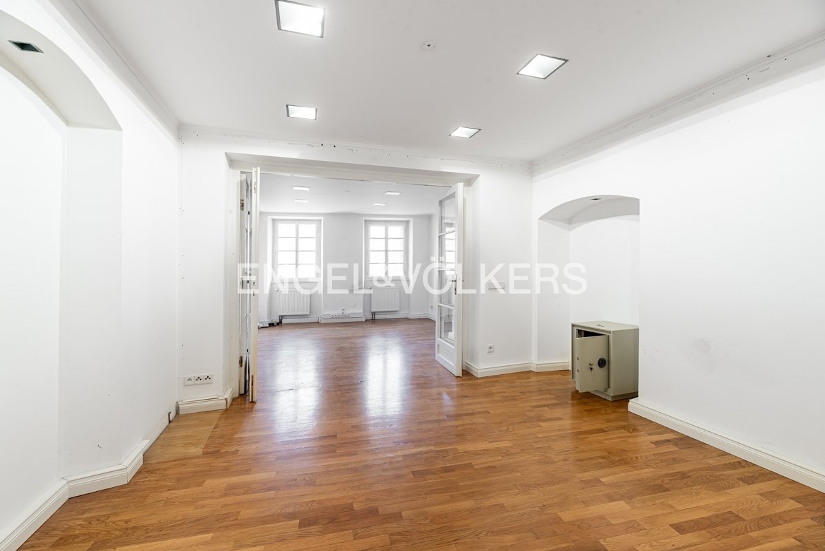 Přízemí a 1. patro tvoří reprezentativní administrativní část domu vhodnou pro ambasádu, advokátní kancelář, family office, galerii nebo firemní sídlo.
