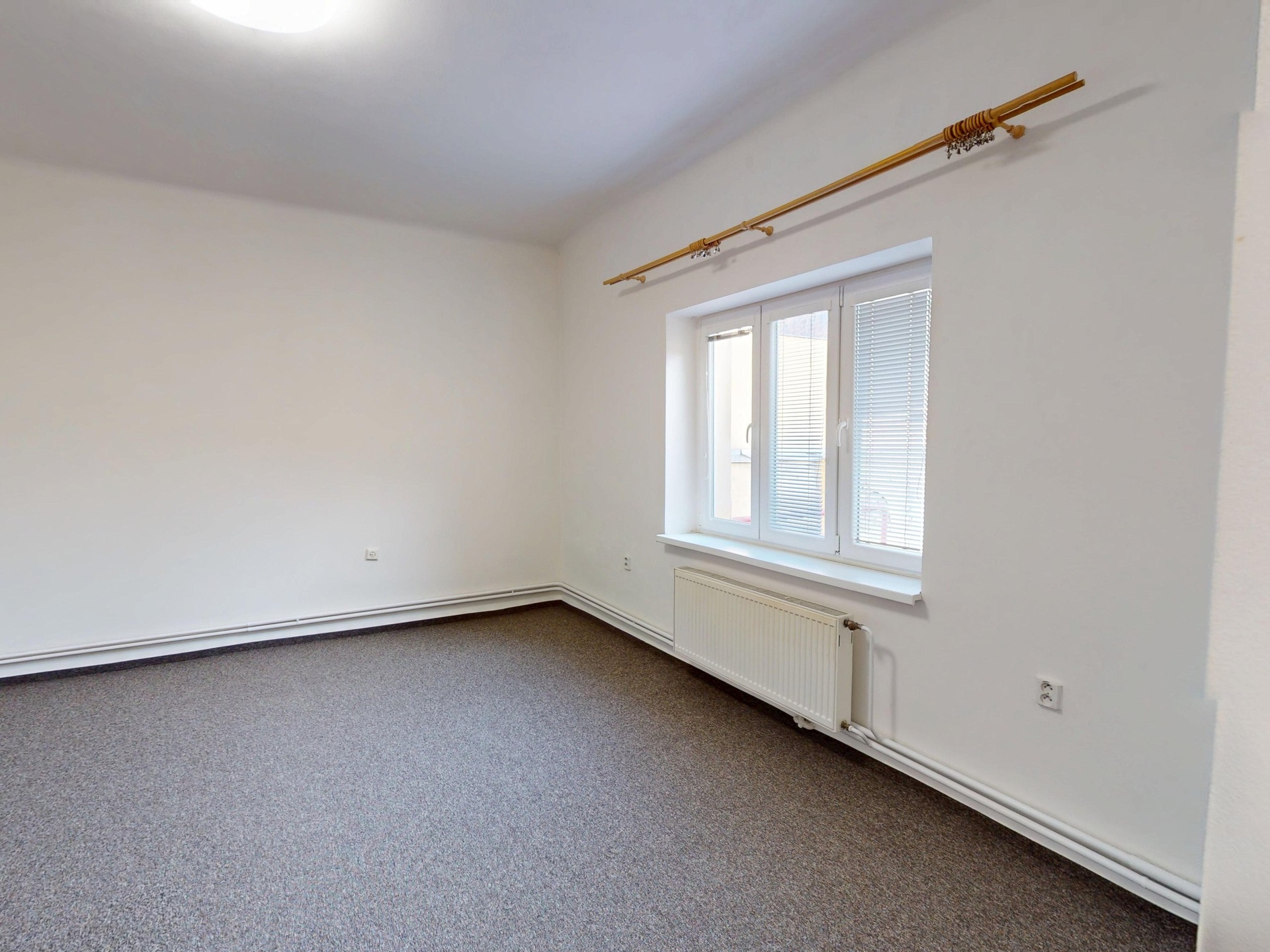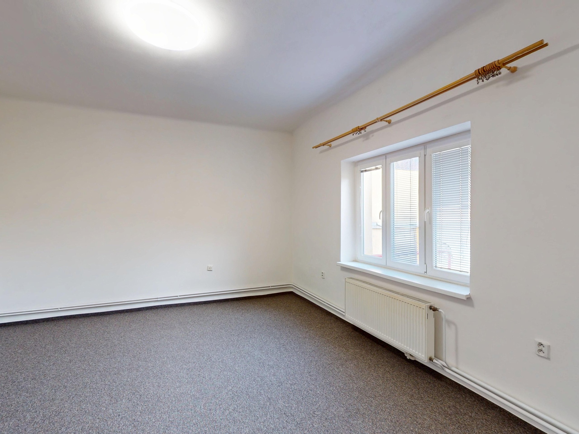 Stav: Nezařízeno, na podlahách jsou položeny koberce.
