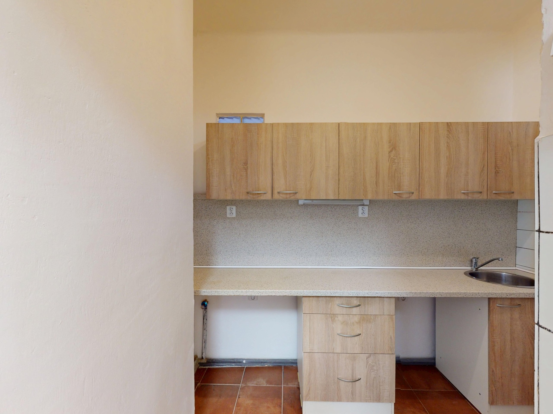 Zázemí: Samostatná kuchyňka s linkou (4,4 m2), koupelna se sprchovým koutem a samostatné WC.