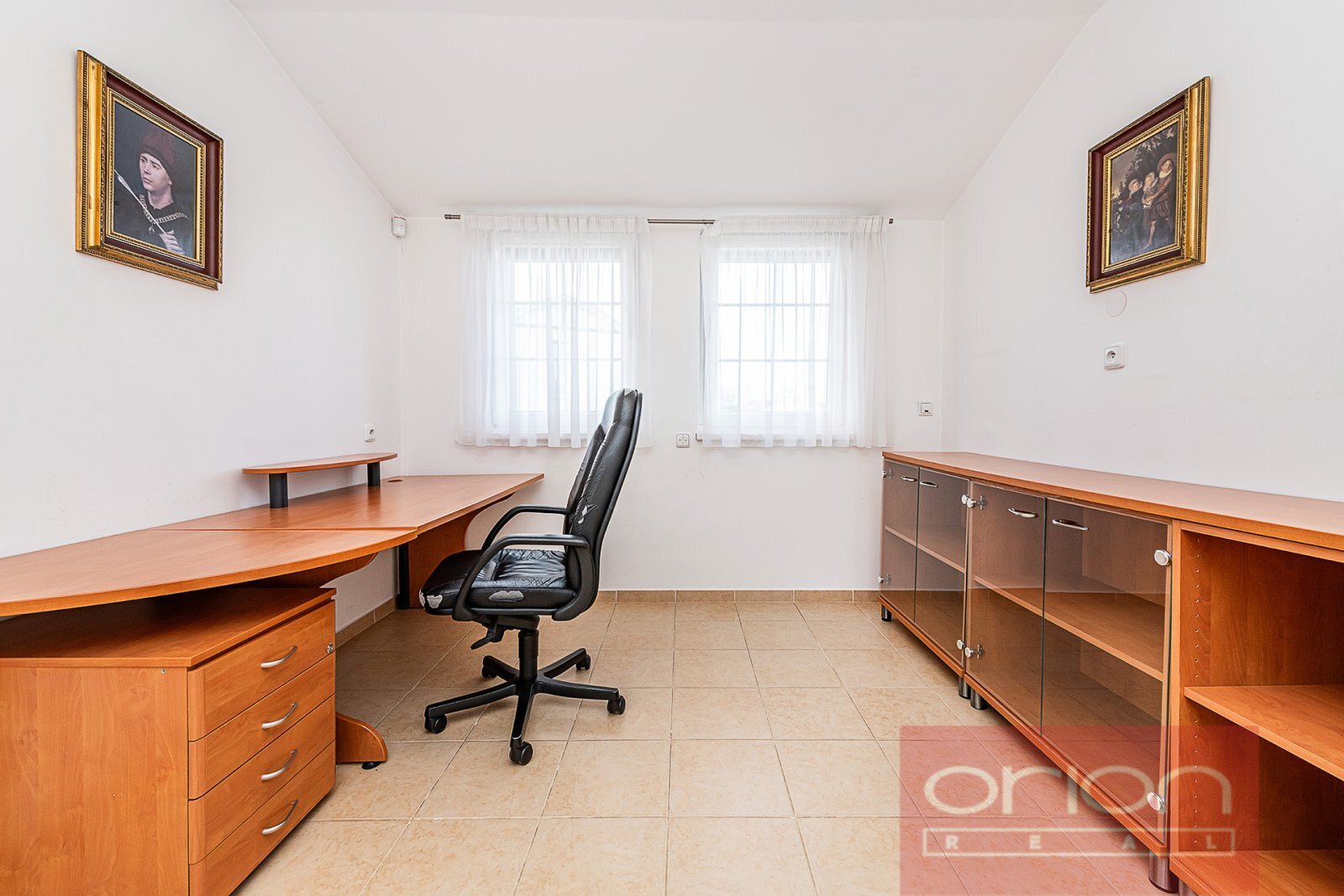 Nabízíme k pronájmu prostorný rodinný dům s dispozicí 7+1 se zahradou a bazénem v klidné oblasti Prahy 6 - Suchdol. Dům o celkové ploše 253 m2 nabízí v přízemí vstupní předsíň, prostorný obývací pokoj s jídelní částí, krbem a přímým vstupem na terasu s bazénem, samostatnou kuchyn se všemi spotřebiči, dvě ložnice, koupelnu, samostatná toaleta pro hosty a technickou místnost. V horním patře je druhý obývací pokoj/herna se vstupem na balkon, dvě ložnice, pracovní kout, koupelnu a úložný prostor. Suterén domu nabízí rozsáhlé úložné prostory, sprchu, toaletu a garáž. Nízkonákladový dům je vybavený úsporným topným systémem se solárními kolektory, součástí vybavení je centrální vysavač, elektrické žaluzie, podlahové topení, parkety, dlažba a koberce. Udržovaná zahrada s ovocnými stromy o velikosti 800 m2 zajišřuje dostatek soukromí i příjemný prostor k relaxaci