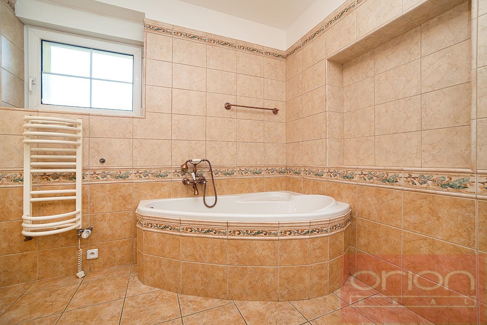 Nabízíme k pronájmu samostatně stojící rodinný dům 6+1 se zahradou a terasou v rezidenční lokalitě Praha 5 - Řeporyje s veškerou občanskou vybaveností. Dům má celkovou plochu 250 m² a nabízí v přízemí vstupní halu s vestavěnými skříněmi, prostorný reprezentativní obývací pokoj s krbem a se vstupem na terasu a zahradu, plně vybavenou kuchyň s jídelním koutem, 1 ložnici, koupelnu s toaletou a technickou místnost. V horním patře jsou 3 ložnice, koupelna s toaletou (vana, sprchový kout), velká galerie. K vybavení domu patří dřevěné podlahy a dlažba, plynové topení, alarm a garáž pro 2 auta. K domu náleží studio (kancelář) 1+kk s koupelnou, toaletou a kuchyňským koutem vhodný jako pracovna nebo pokoj pro hosty. Na zahradě o velikosti 700 m² je venkovní krb a velký zahradní domek. Zahrada poskytuje dostatek soukromí. V místě je veškerá občanská vybavenost: škola, školka, v okolí jsou obchody Billa, Lidl, MAKRO. Dobré dopravní spojení MHD, vlakem a autem do centra, ke stanici metra, do nákupního centra Nové Butovice a Zličín a na letiště Václava Havla. Snadná dostupnost na nájezd na Pražský okruh.