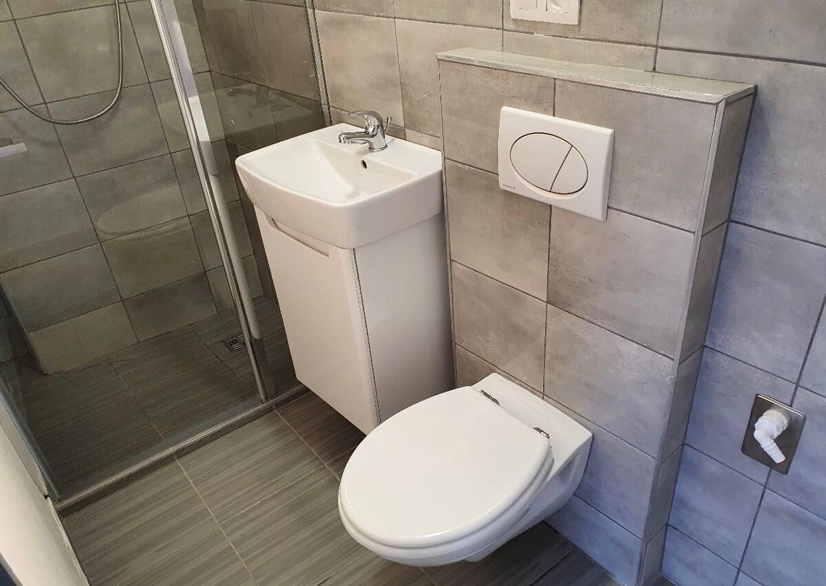 Koupelna je vybavena sprchovým koutem a toaletou.